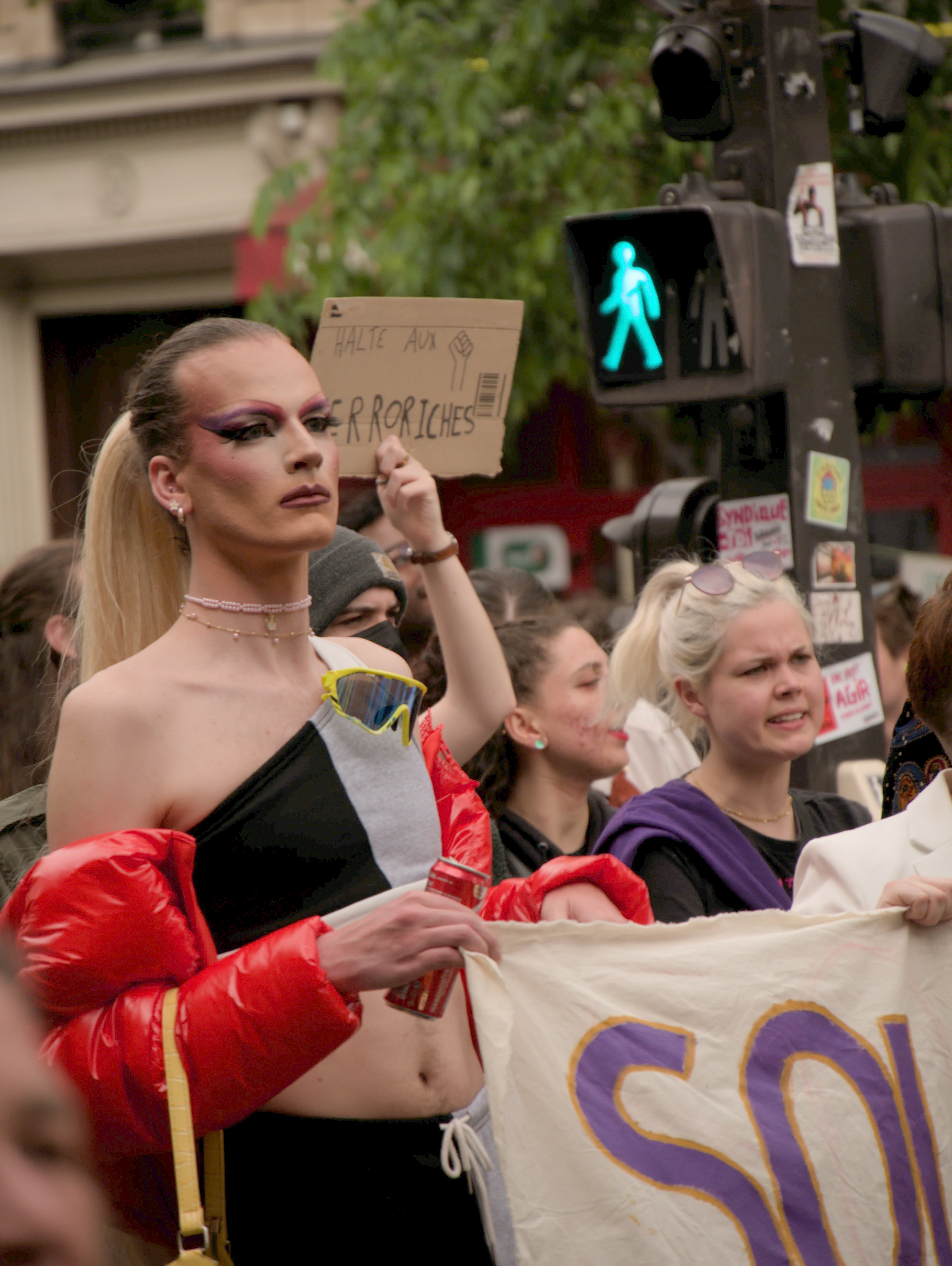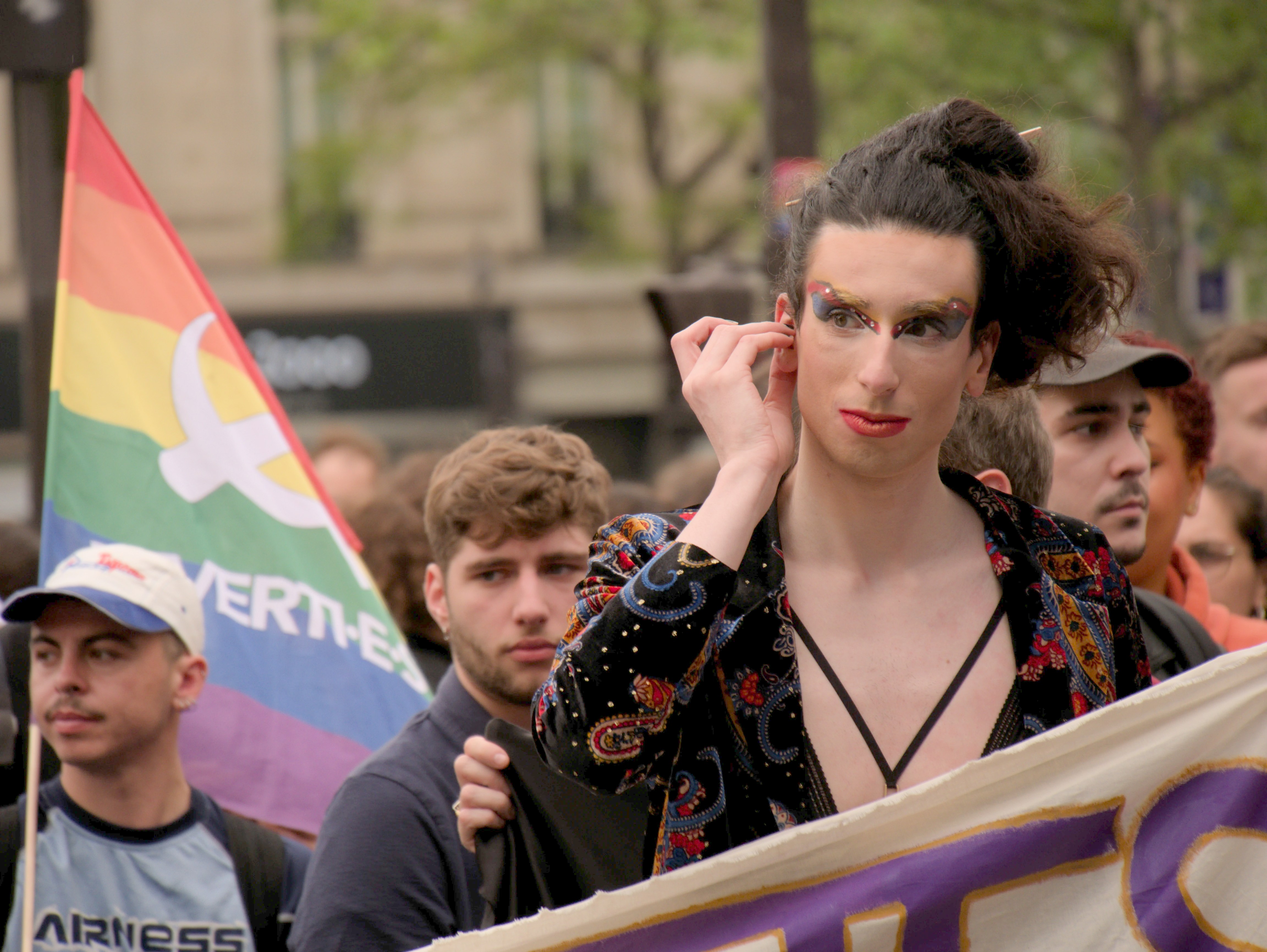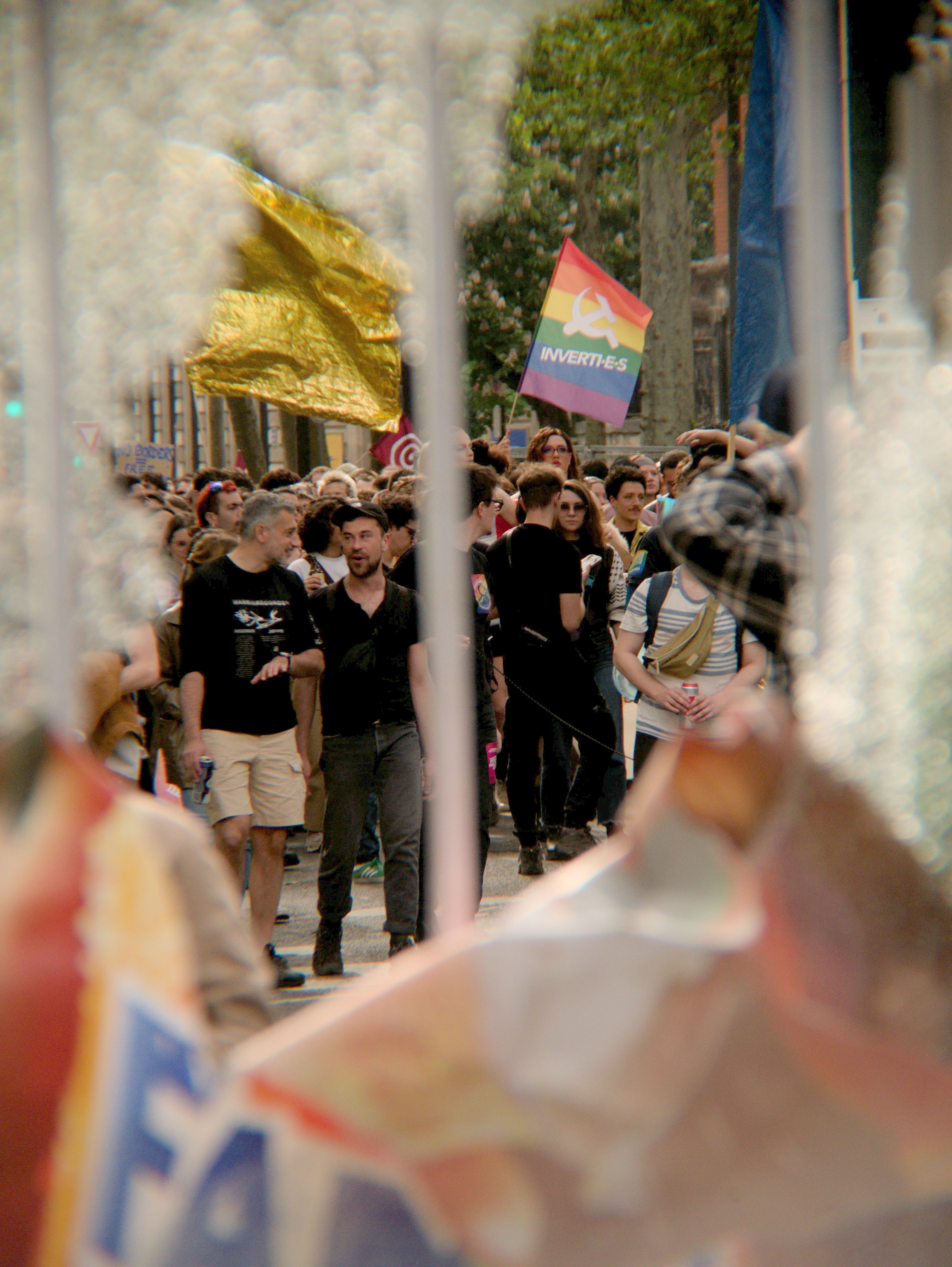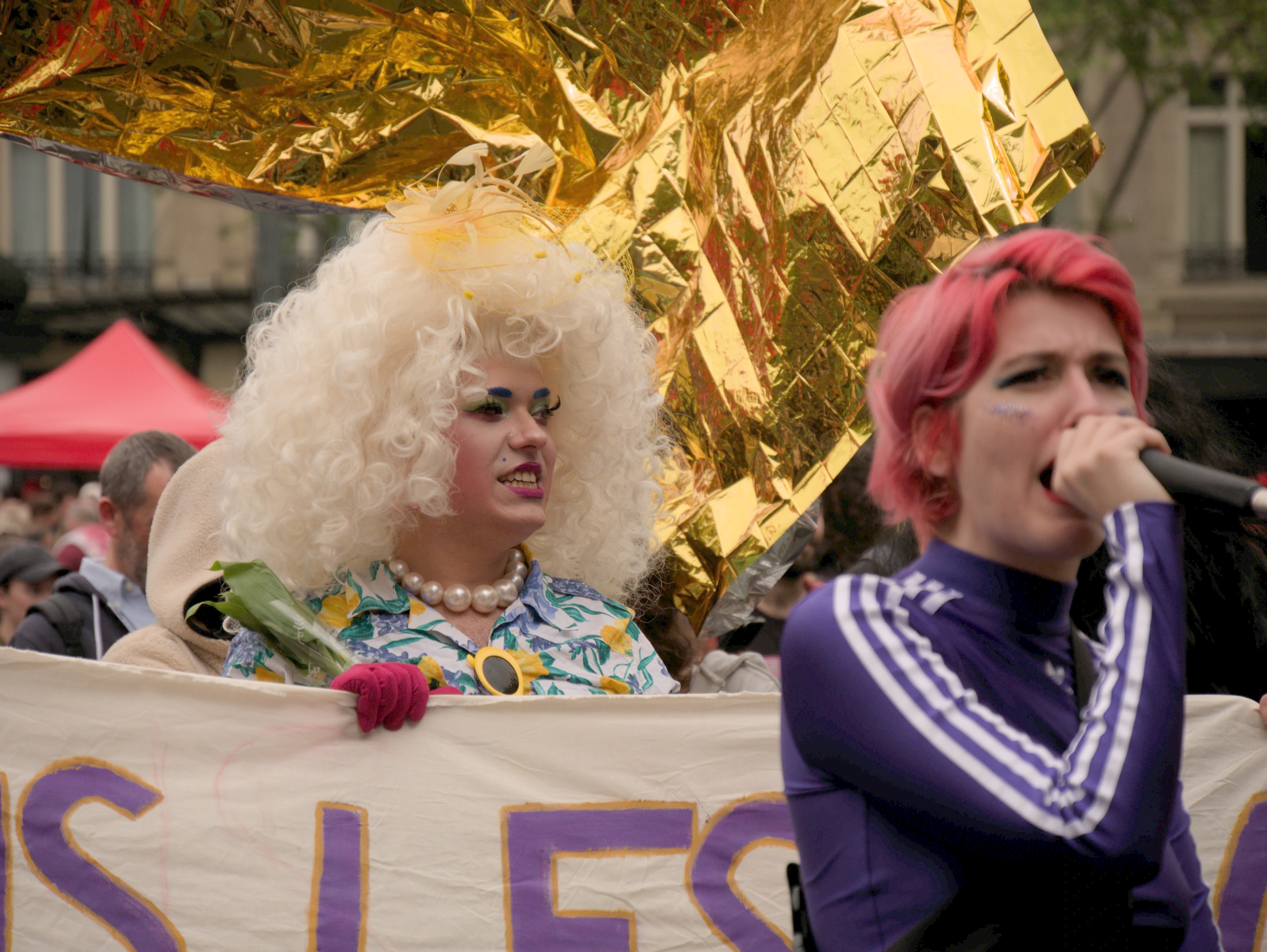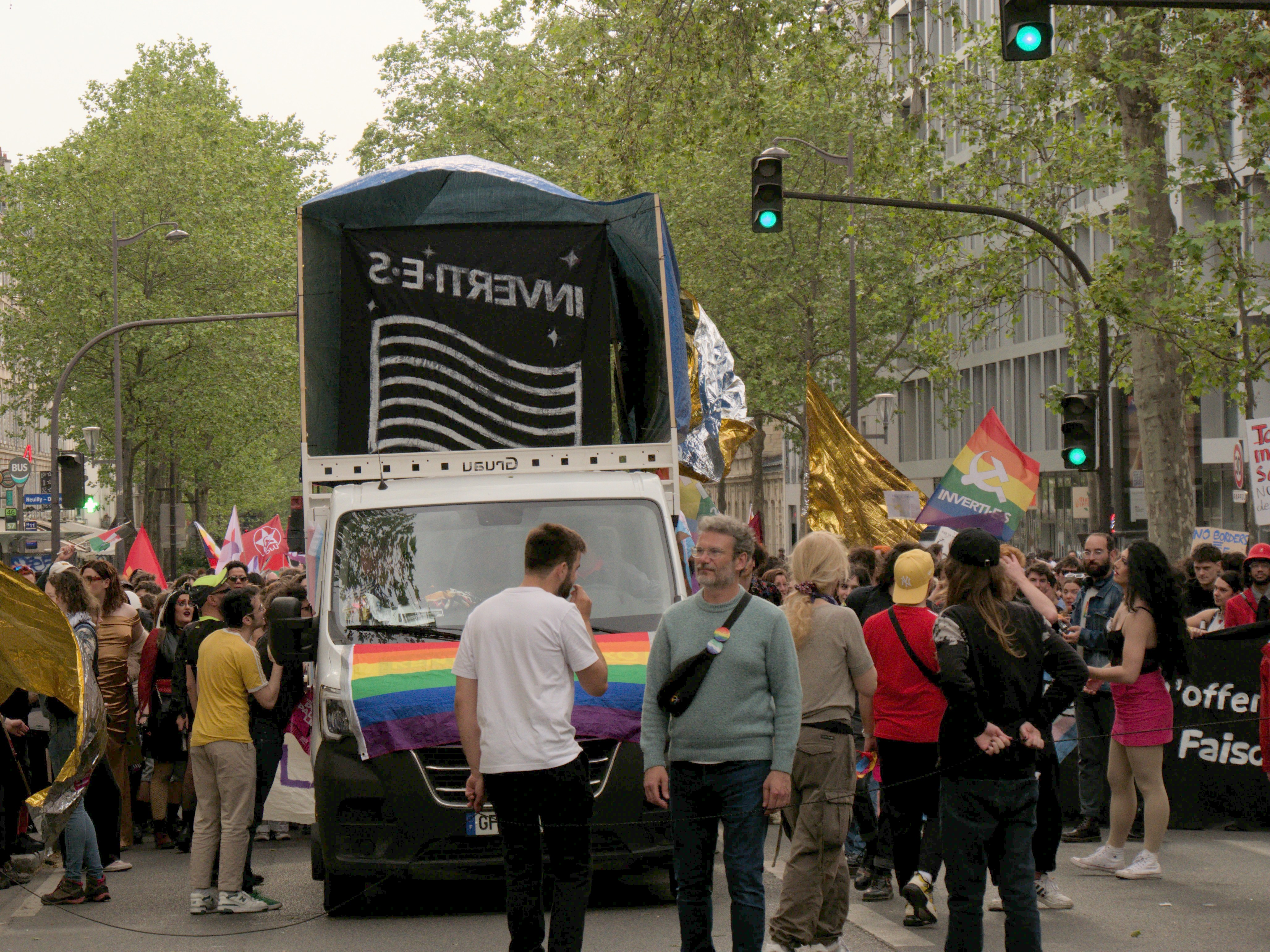 Cette année, pour le Premier Mai, fête nationale des travailleurs et travailleuses, j’ai décidé de suivre avec mon appareil photo le cortège des Inverti·es, un collectif politique qui s’efforce à mettre en lien les enjeux de luttes des classes économiques avec ceux que subissent les minorités sexuelles regroupés sous le sigle LGBTI. Le collectif était accompagné par des Drags venues défendre la valeur de leur travail et revendiquer une rémunération adéquate.