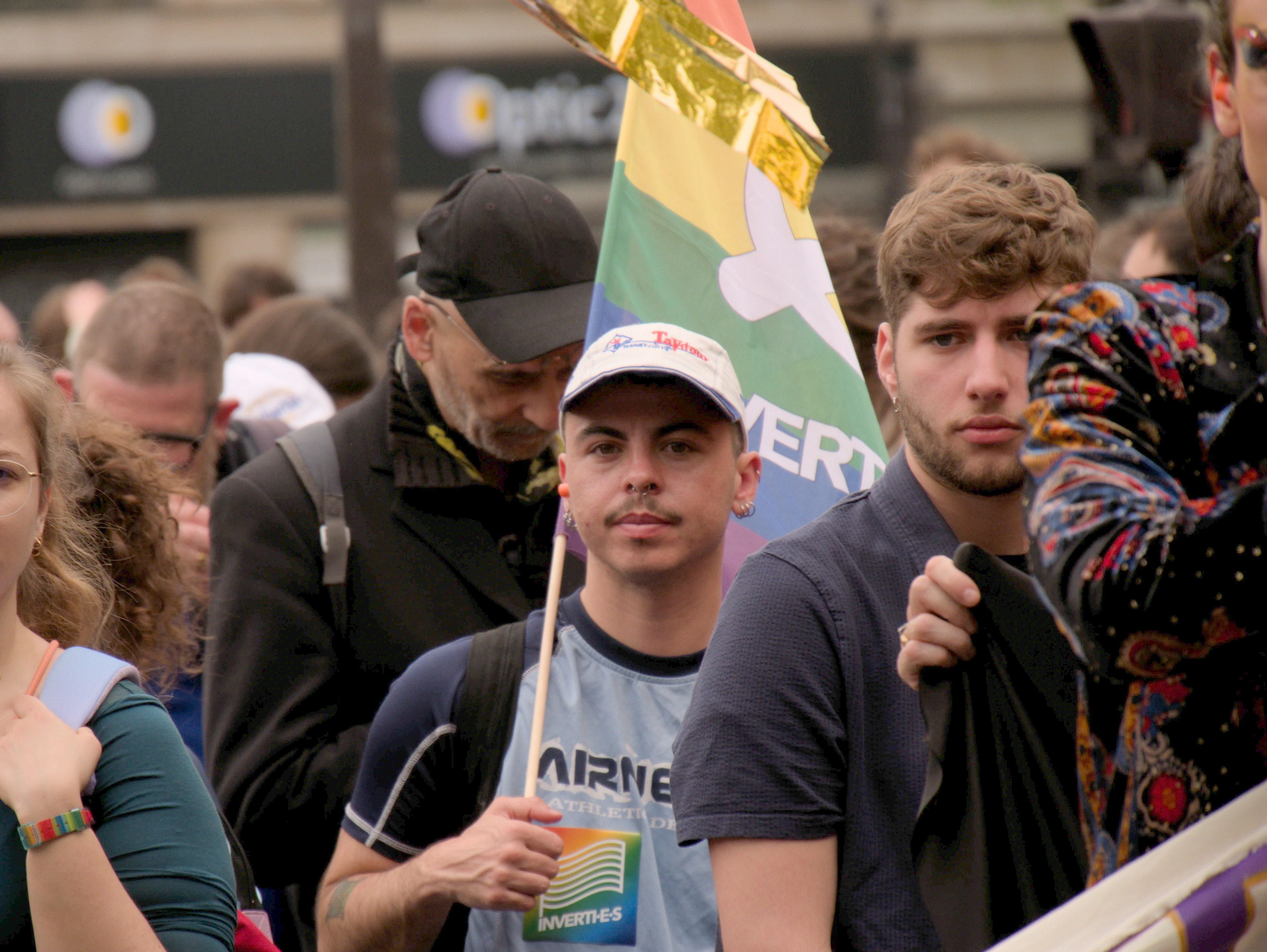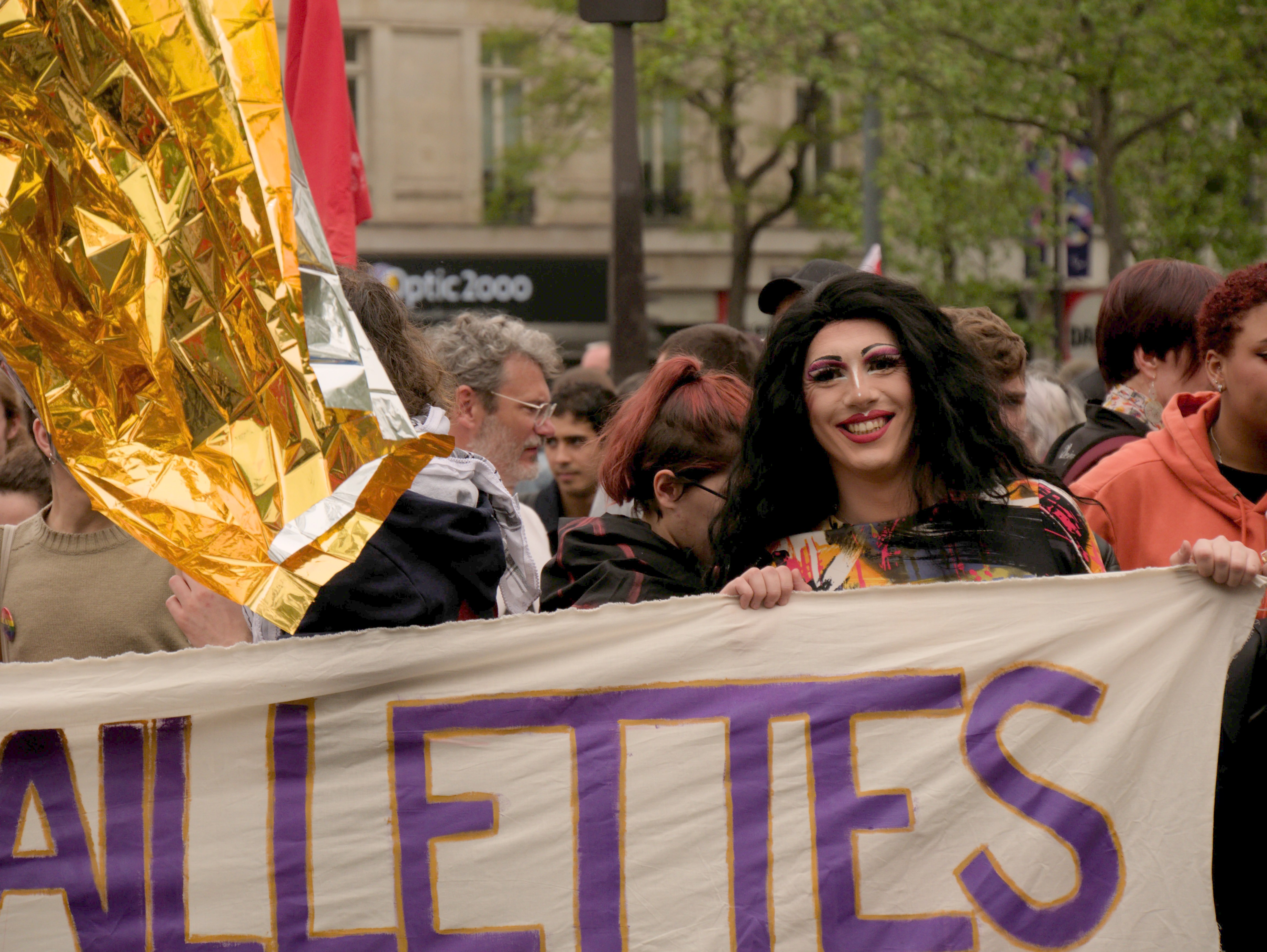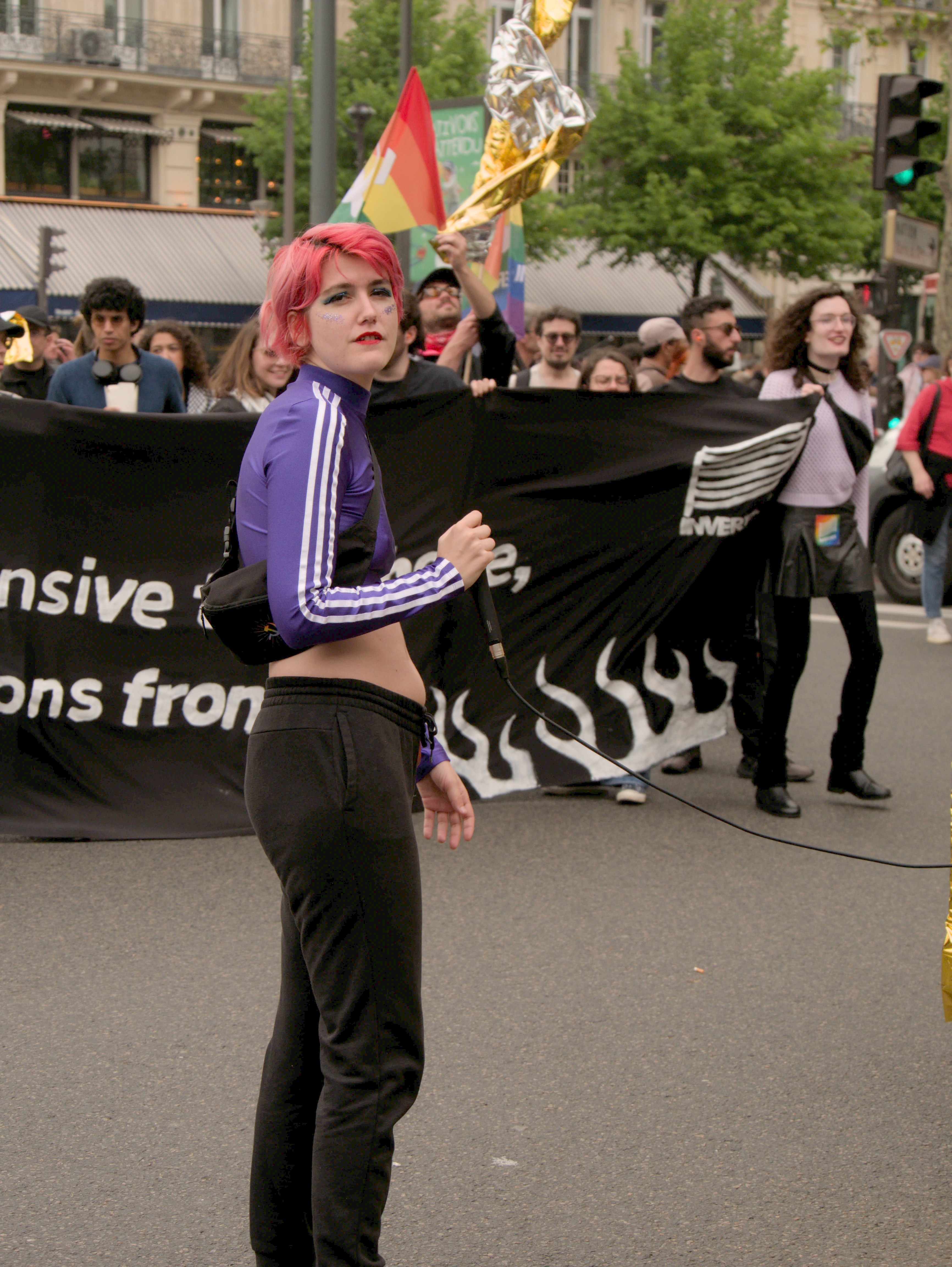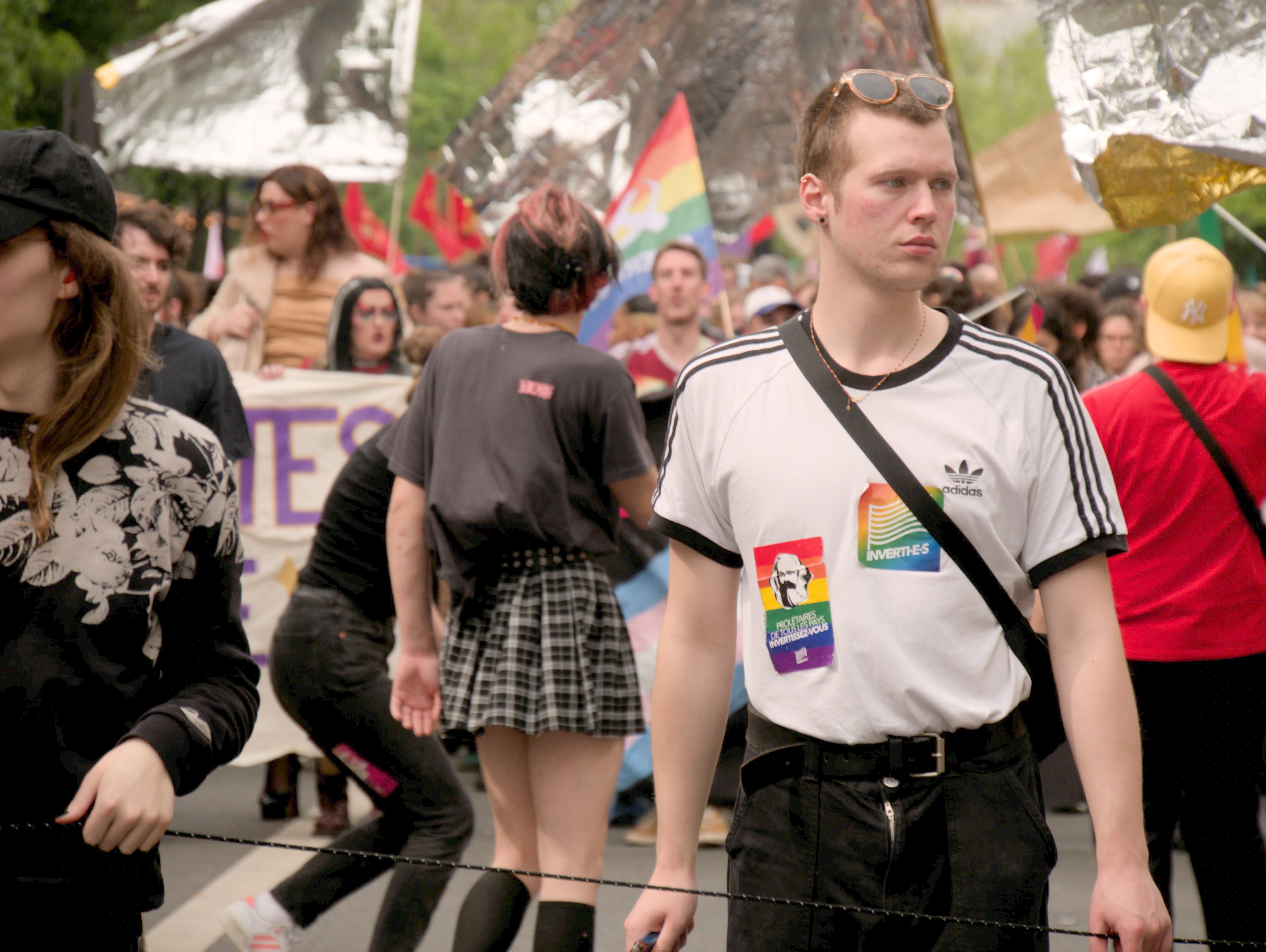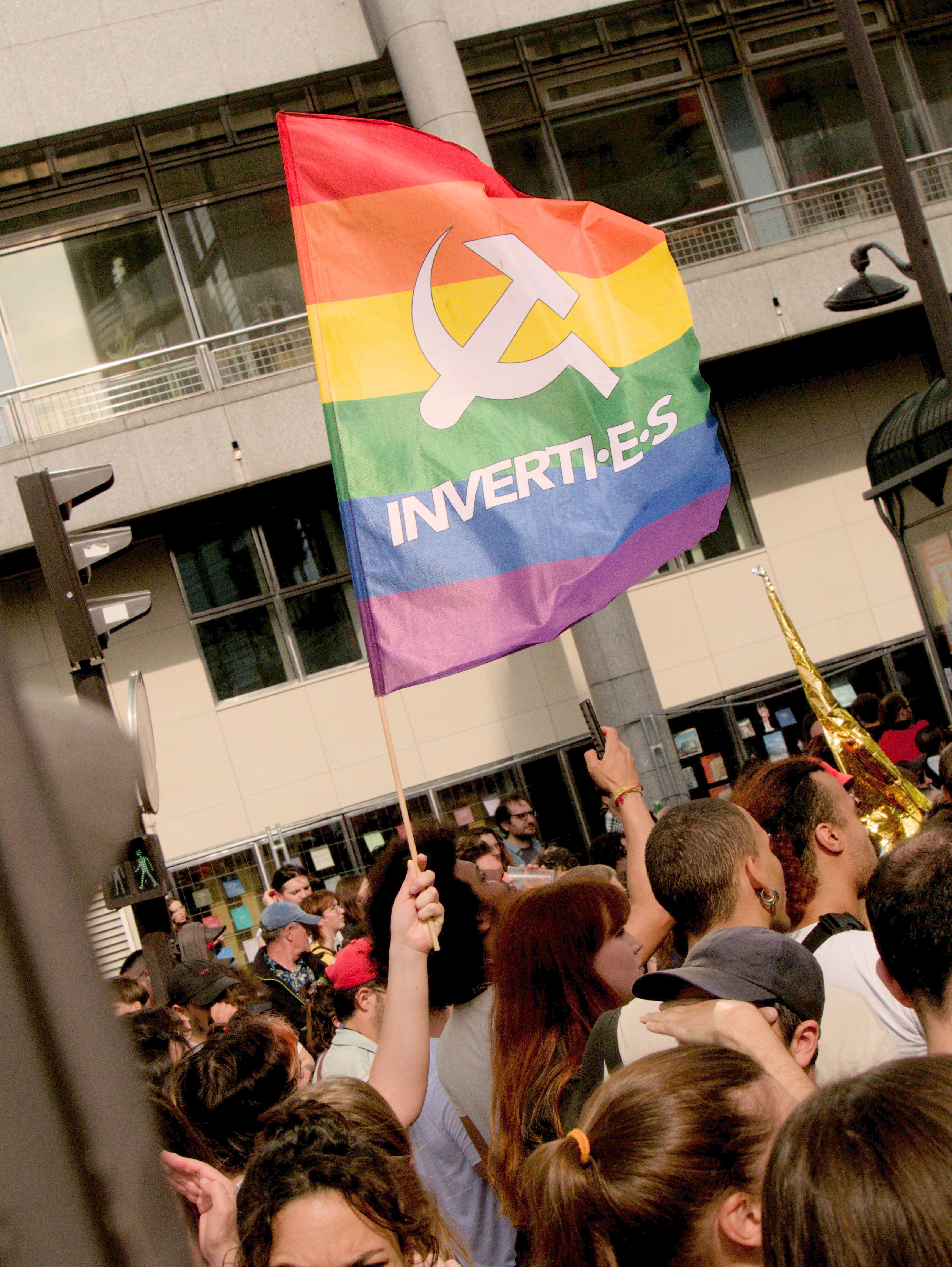 Cette année, pour le Premier Mai, fête nationale des travailleurs et travailleuses, j’ai décidé de suivre avec mon appareil photo le cortège des Inverti·es, un collectif politique qui s’efforce à mettre en lien les enjeux de luttes des classes économiques avec ceux que subissent les minorités sexuelles regroupés sous le sigle LGBTI. Le collectif était accompagné par des Drags venues défendre la valeur de leur travail et revendiquer une rémunération adéquate.