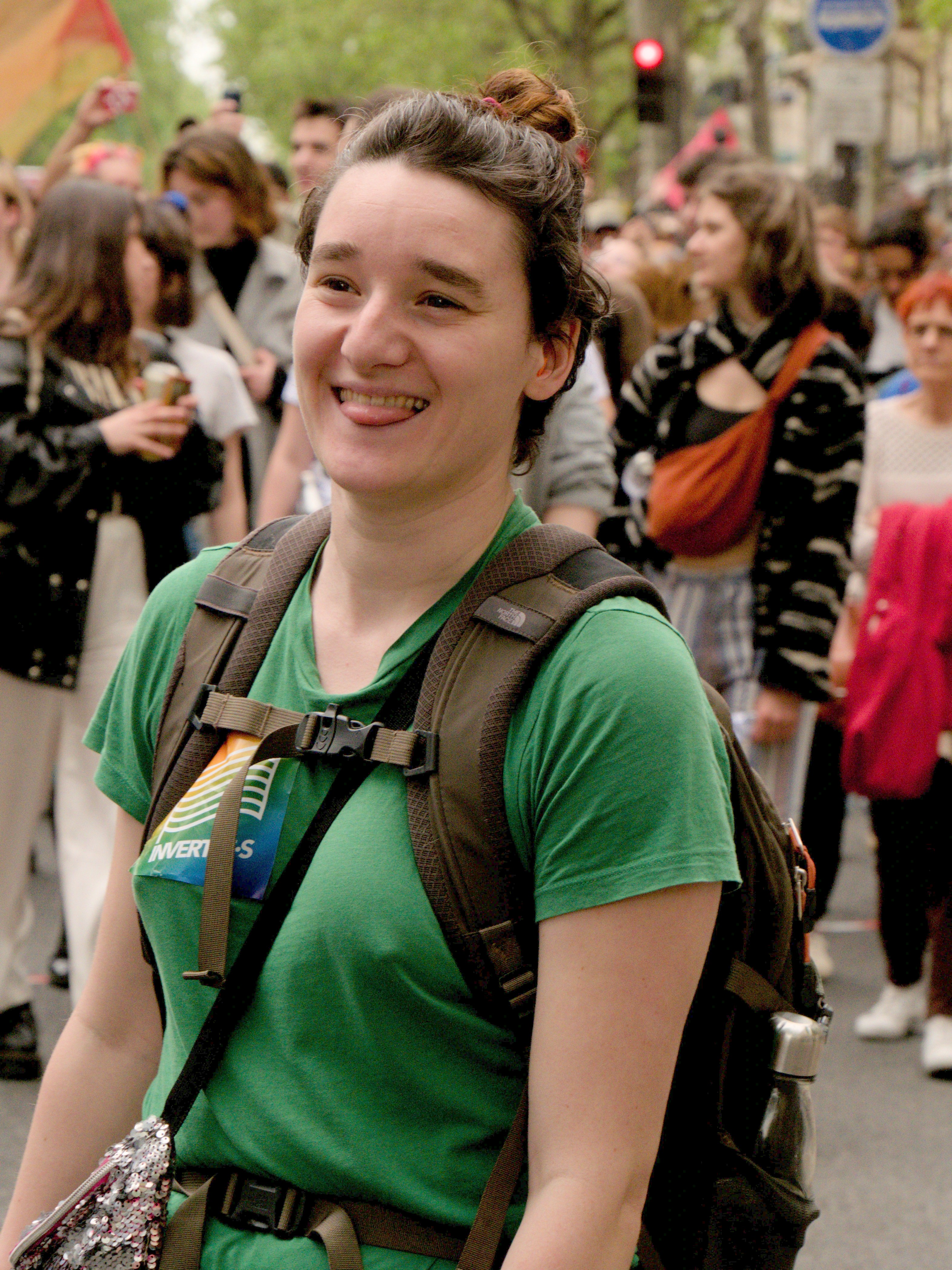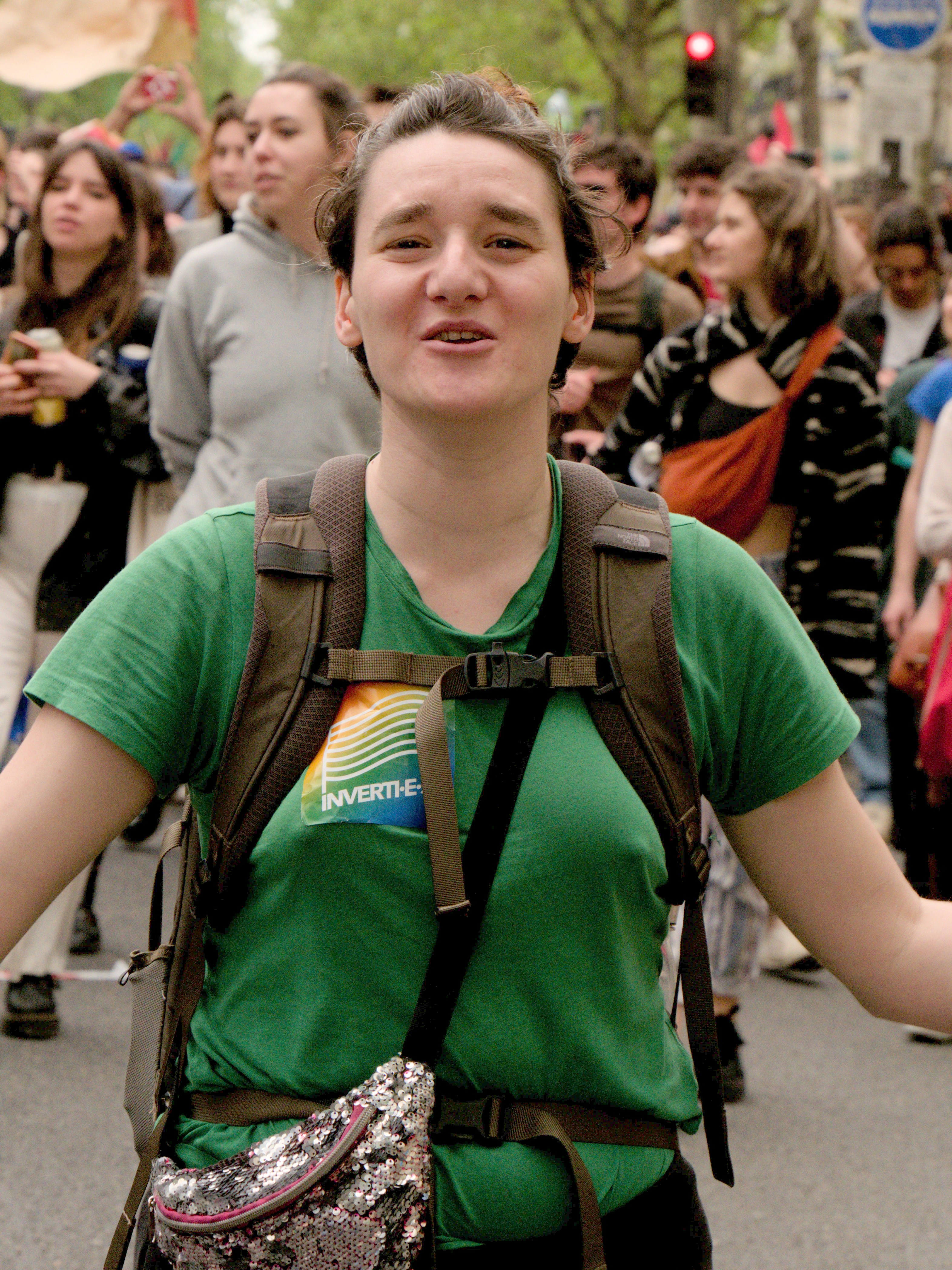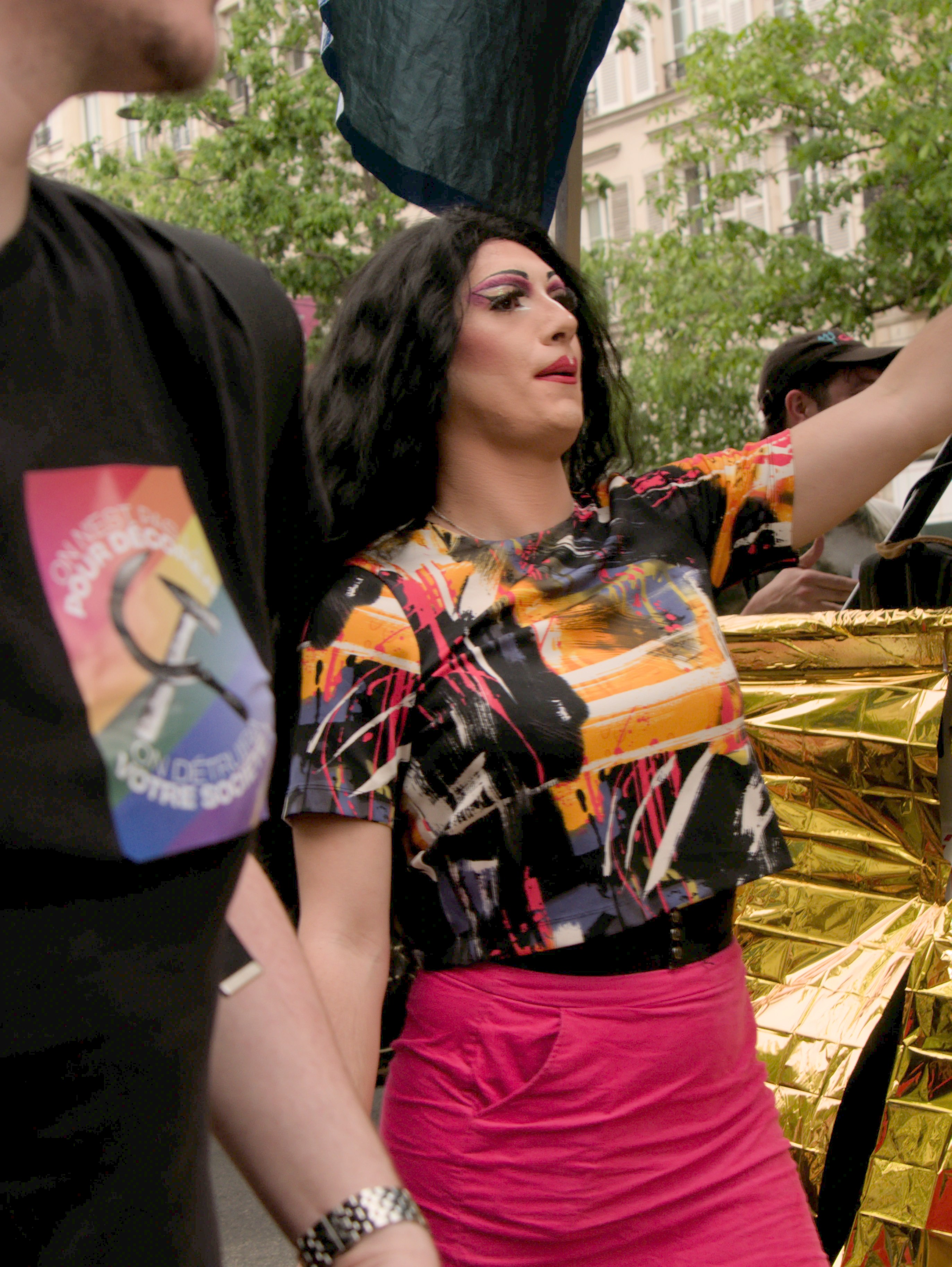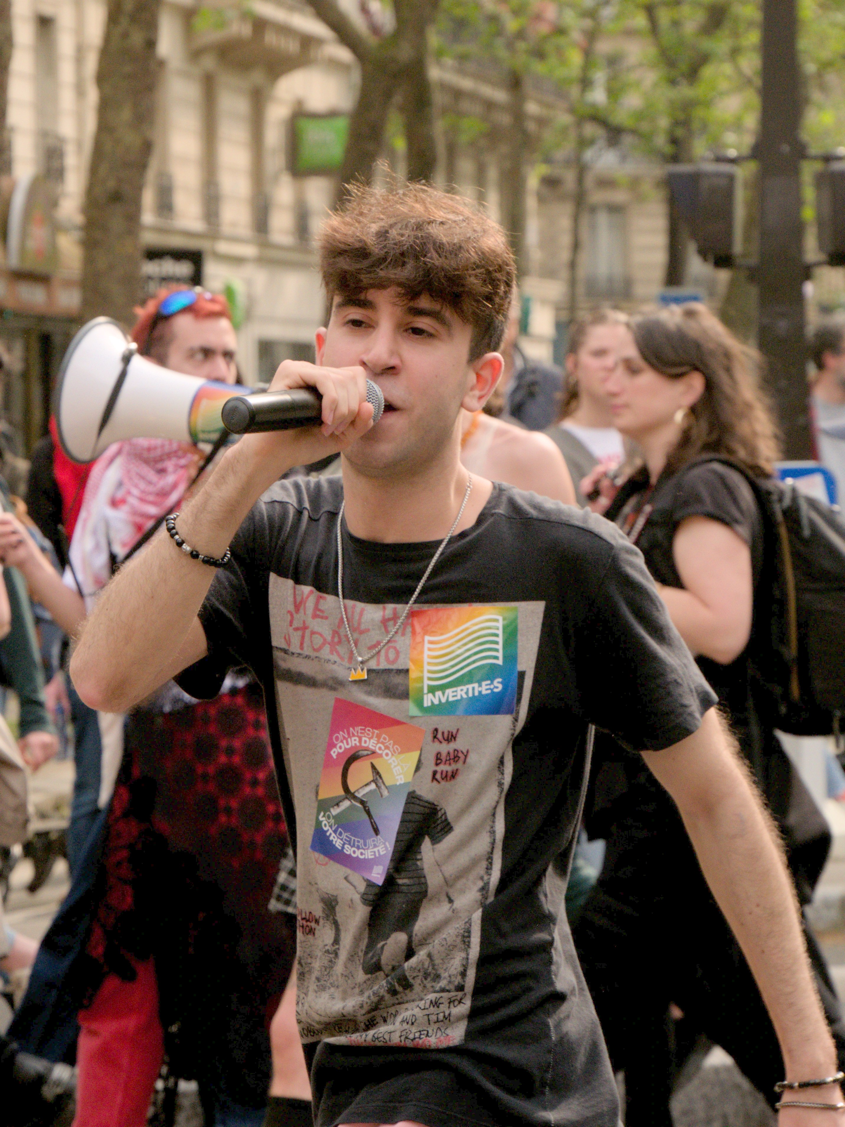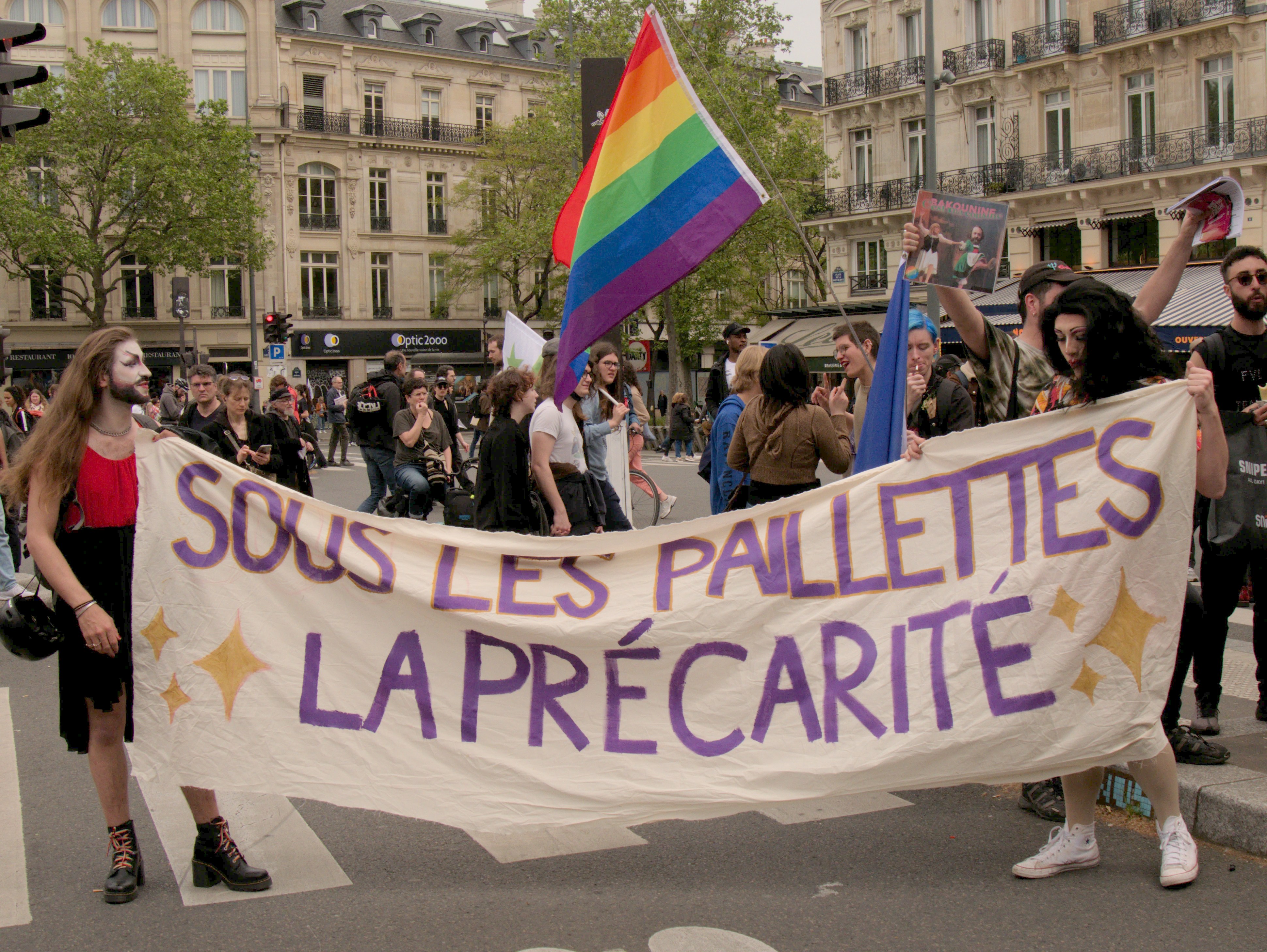 Cette année, pour le Premier Mai, fête nationale des travailleurs et travailleuses, j’ai décidé de suivre avec mon appareil photo le cortège des Inverti·es, un collectif politique qui s’efforce à mettre en lien les enjeux de luttes des classes économiques avec ceux que subissent les minorités sexuelles regroupés sous le sigle LGBTI. Le collectif était accompagné par des Drags venues défendre la valeur de leur travail et revendiquer une rémunération adéquate.