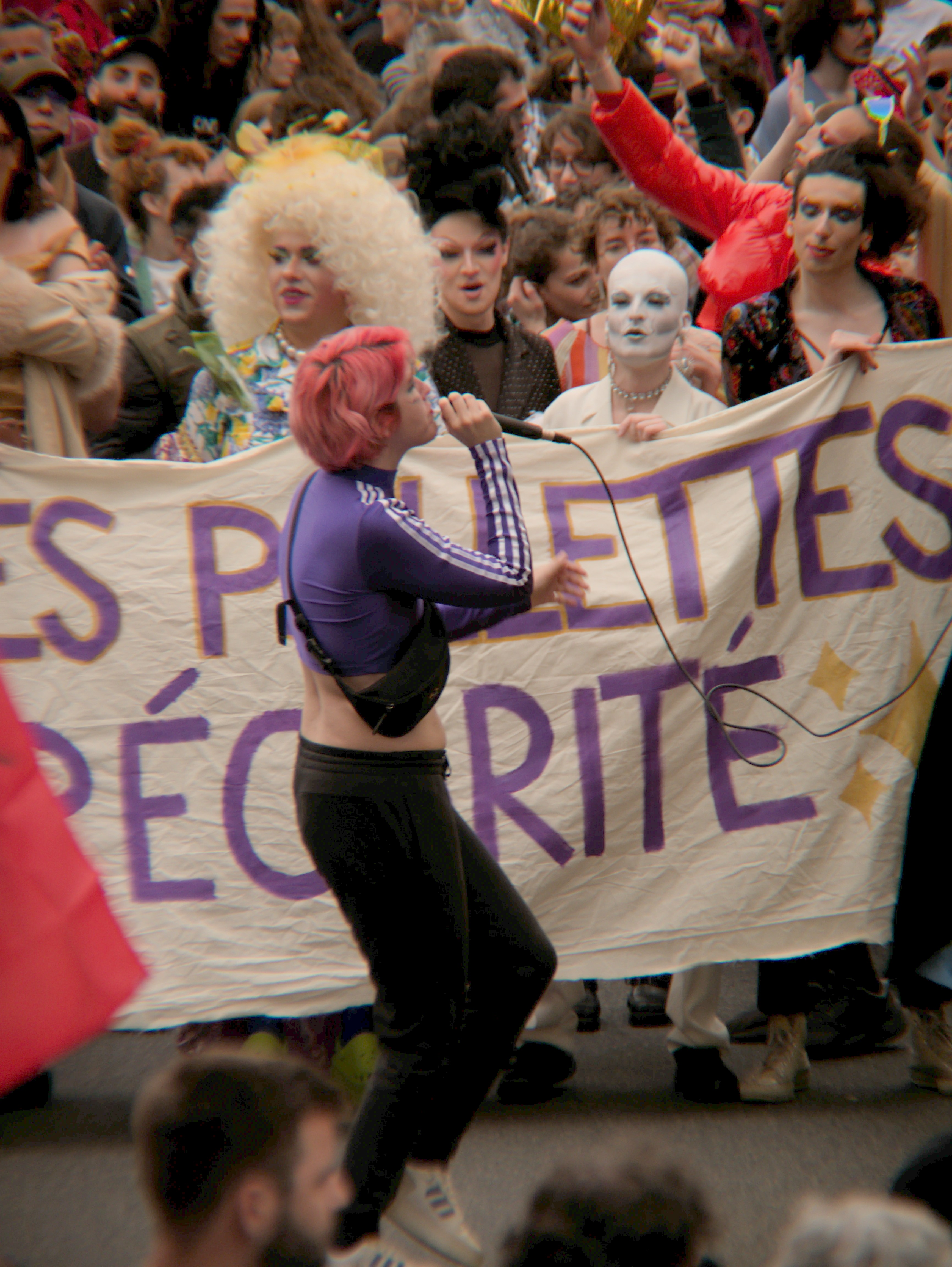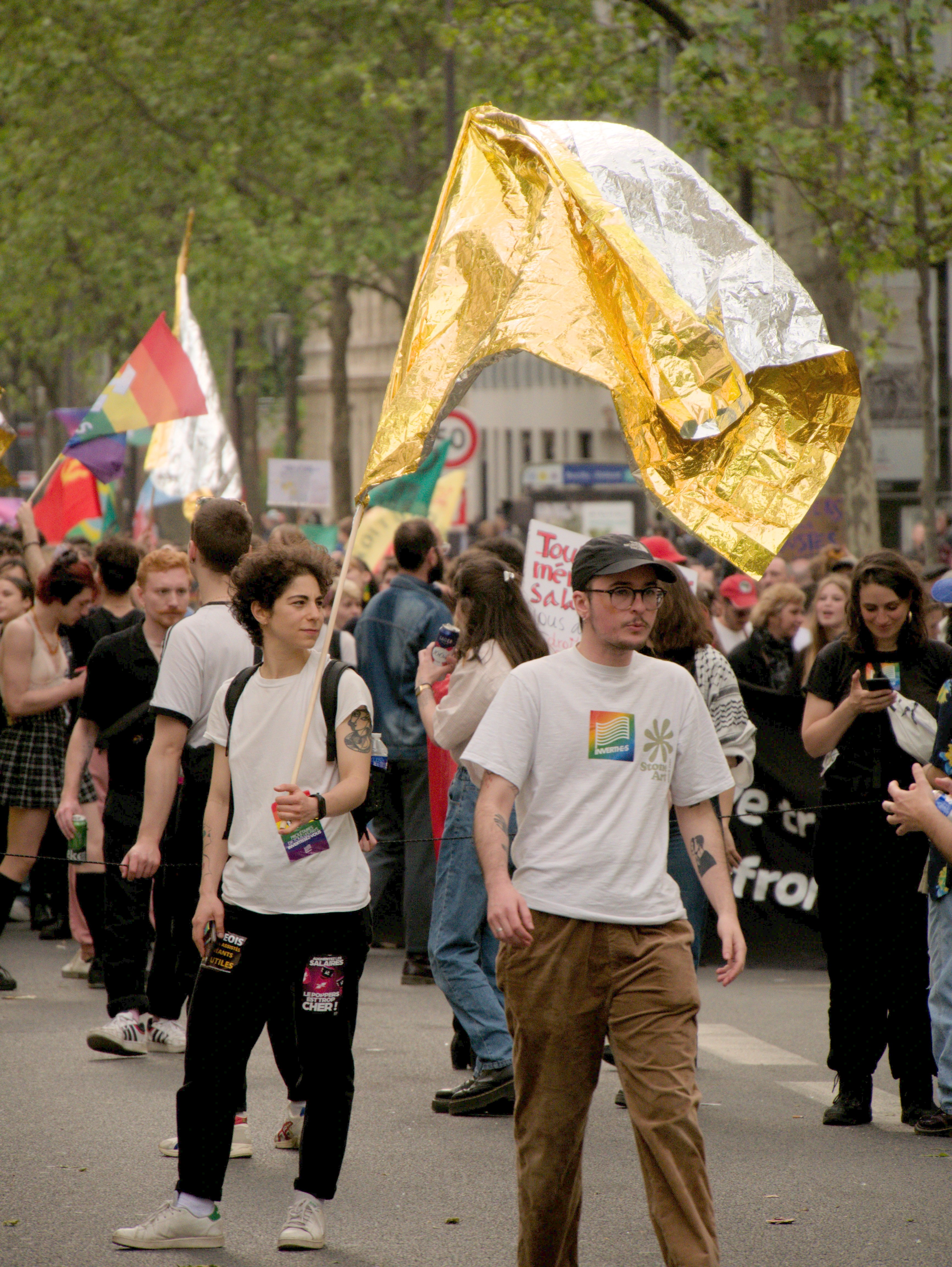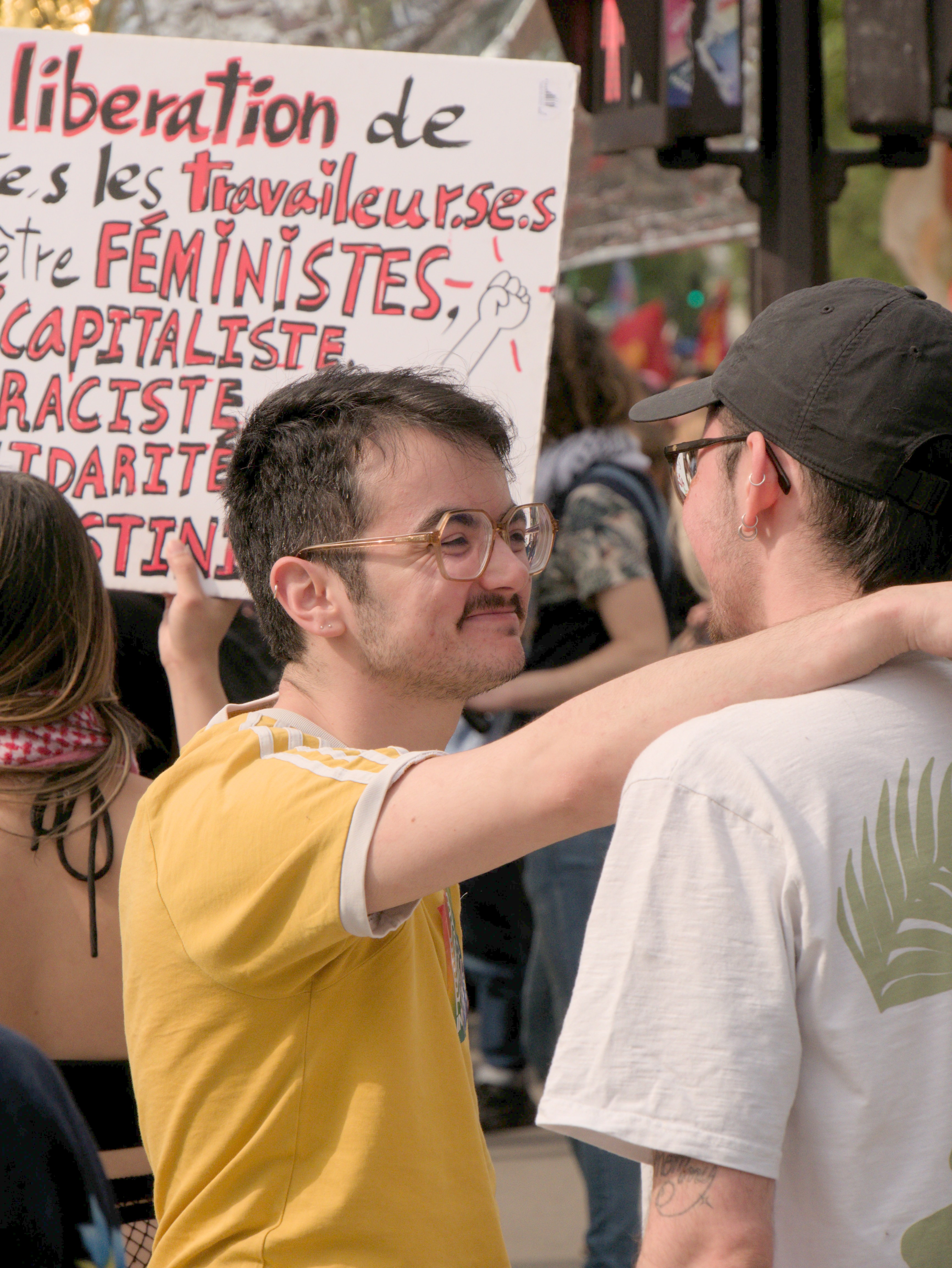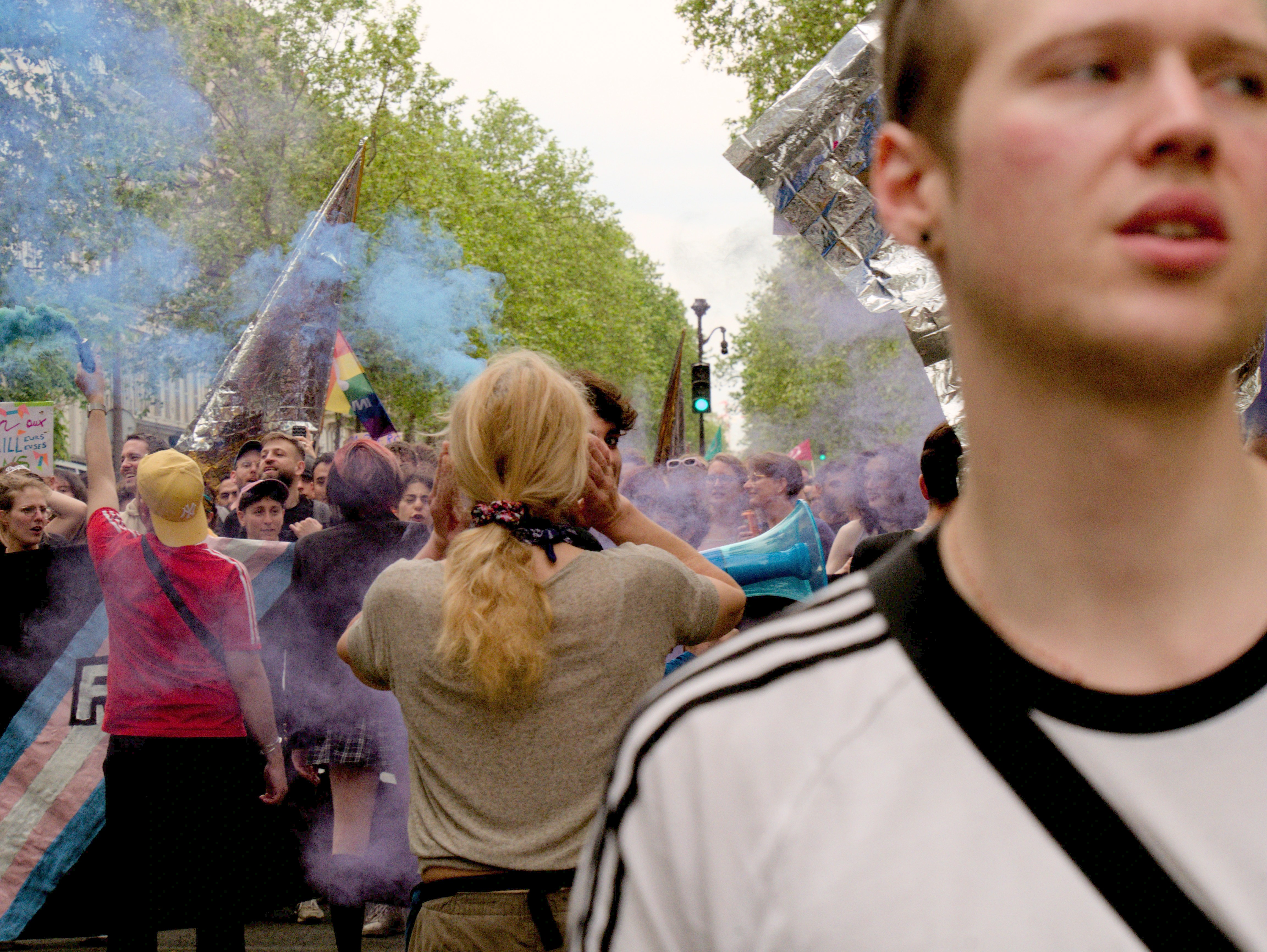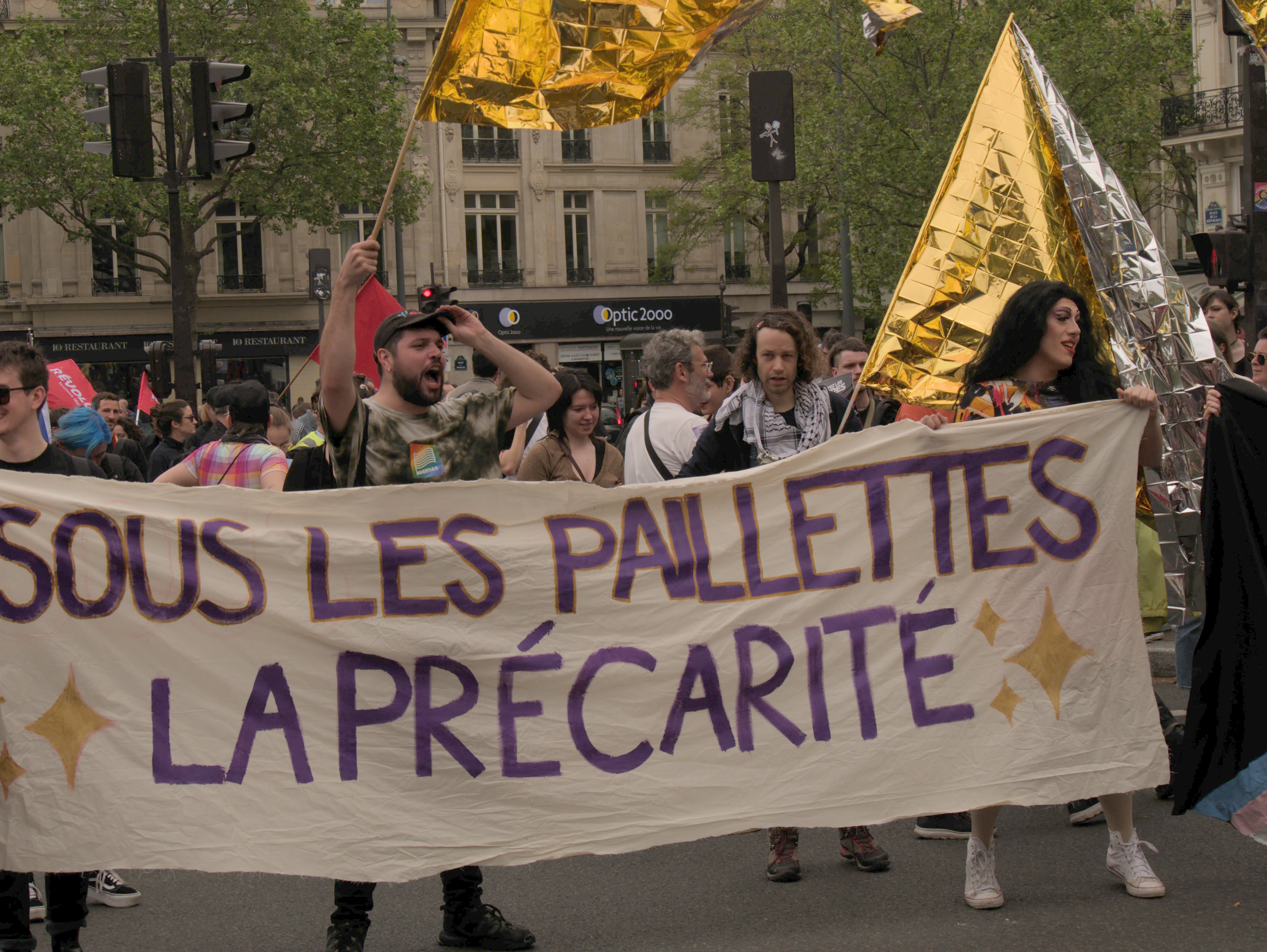 Cette année, pour le Premier Mai, fête nationale des travailleurs et travailleuses, j’ai décidé de suivre avec mon appareil photo le cortège des Inverti·es, un collectif politique qui s’efforce à mettre en lien les enjeux de luttes des classes économiques avec ceux que subissent les minorités sexuelles regroupés sous le sigle LGBTI. Le collectif était accompagné par des Drags venues défendre la valeur de leur travail et revendiquer une rémunération adéquate.