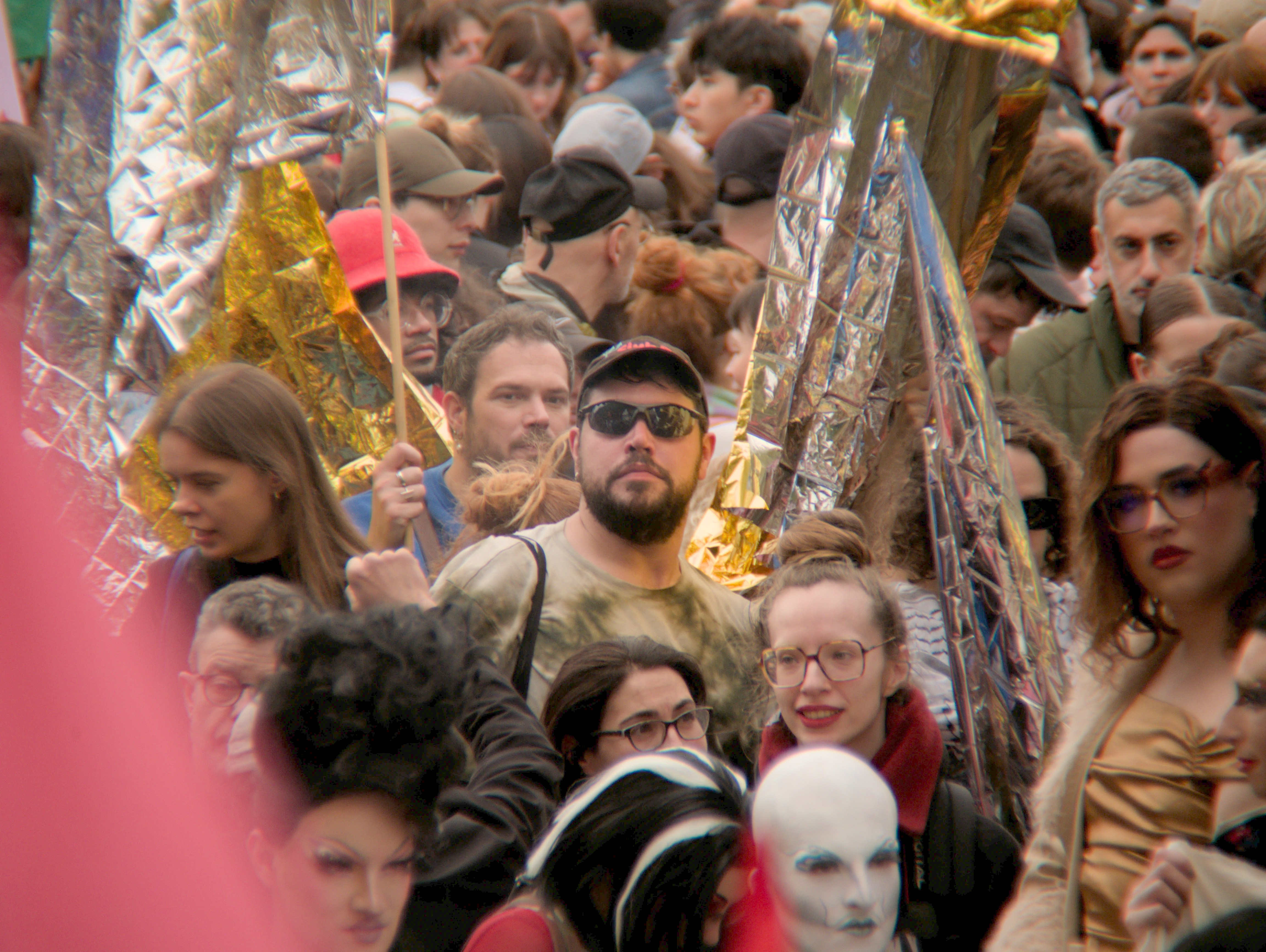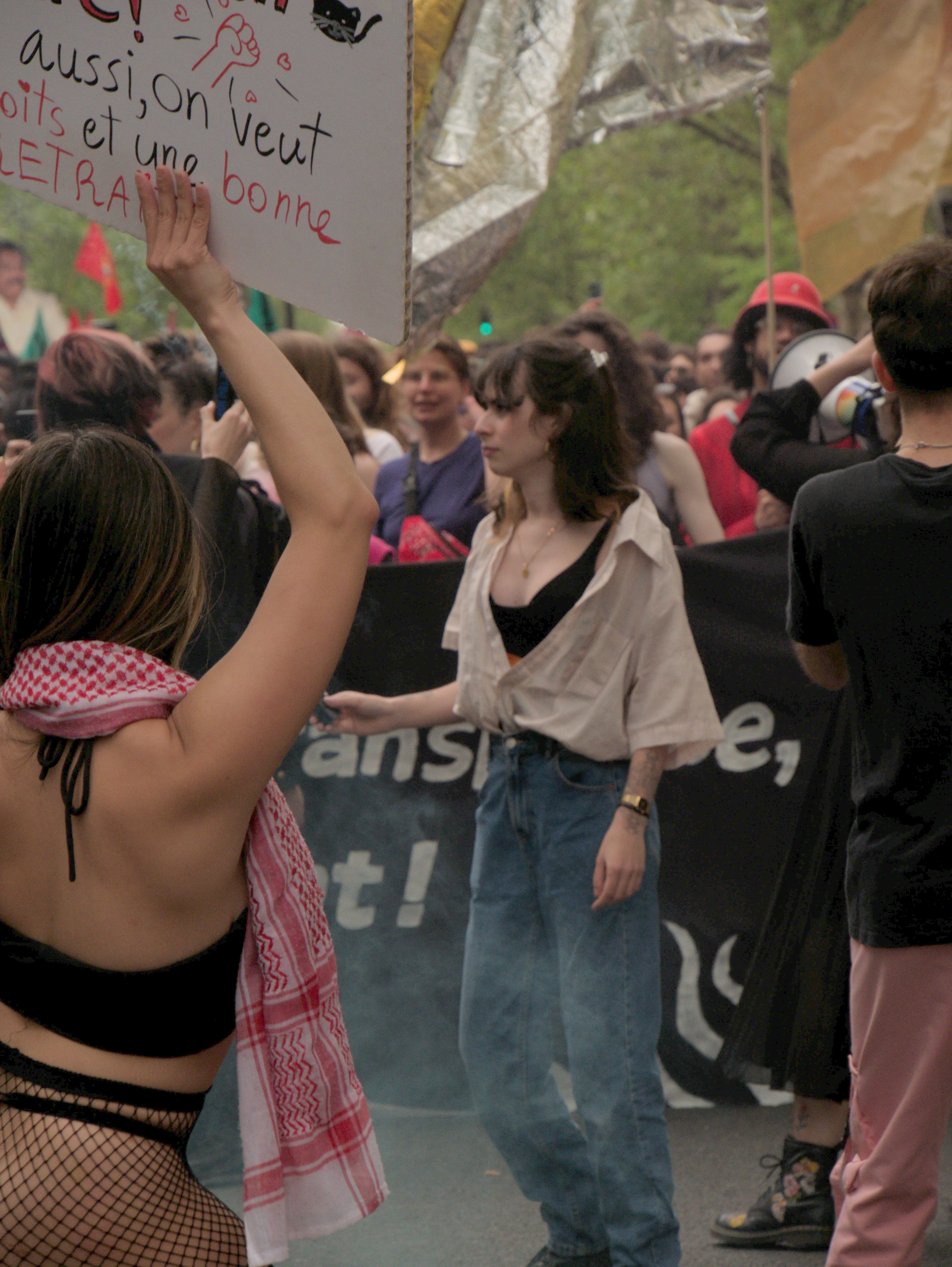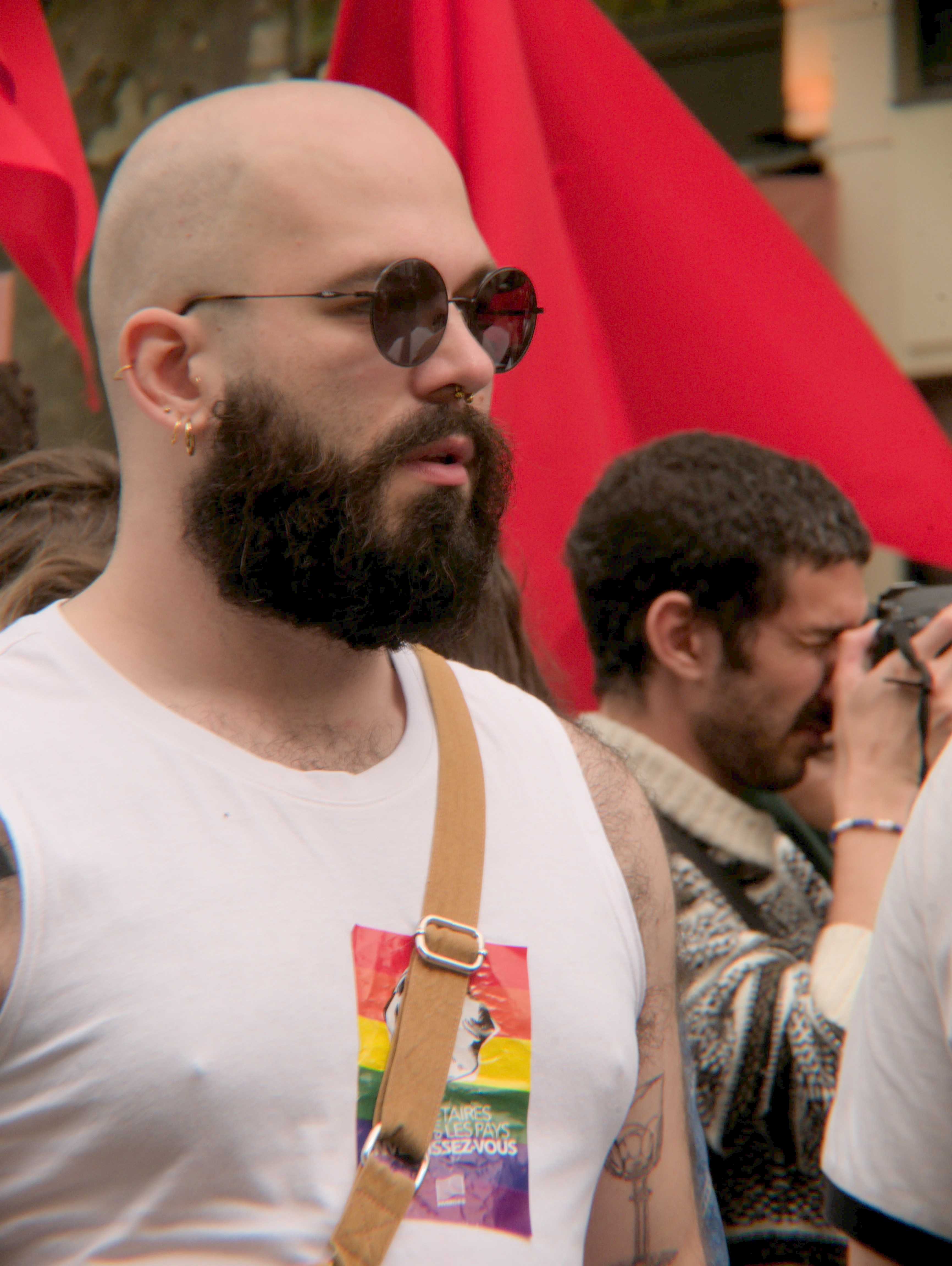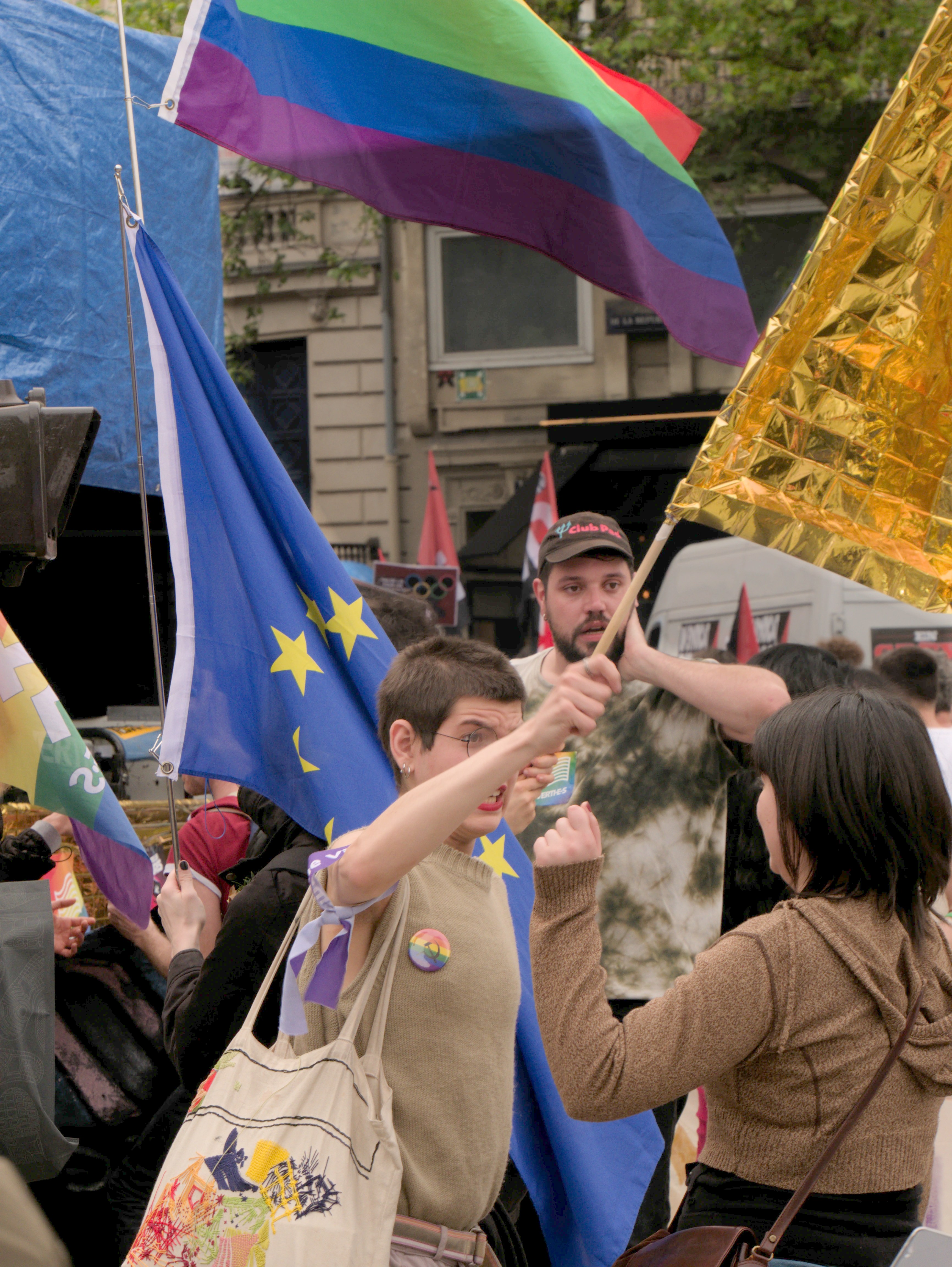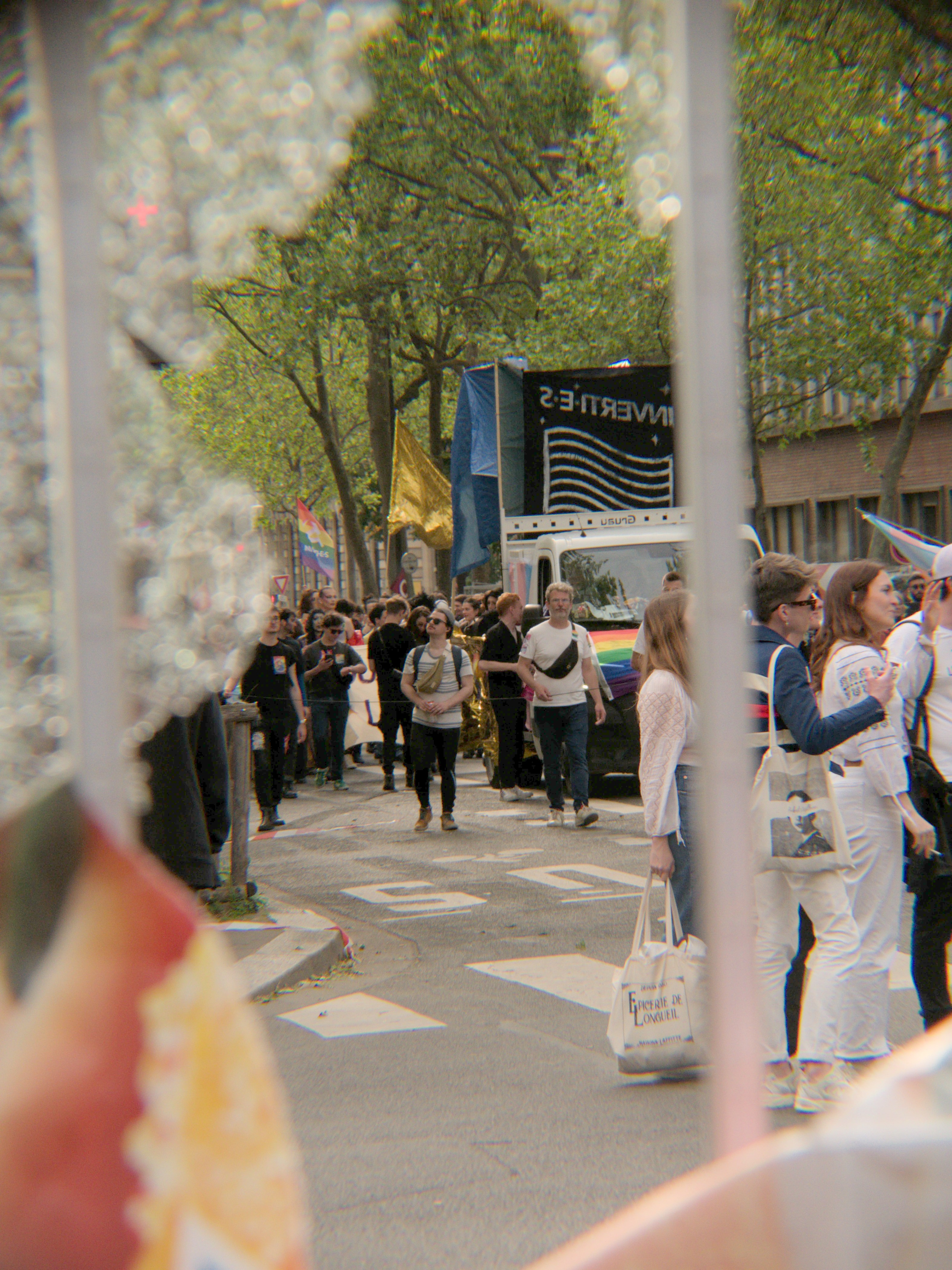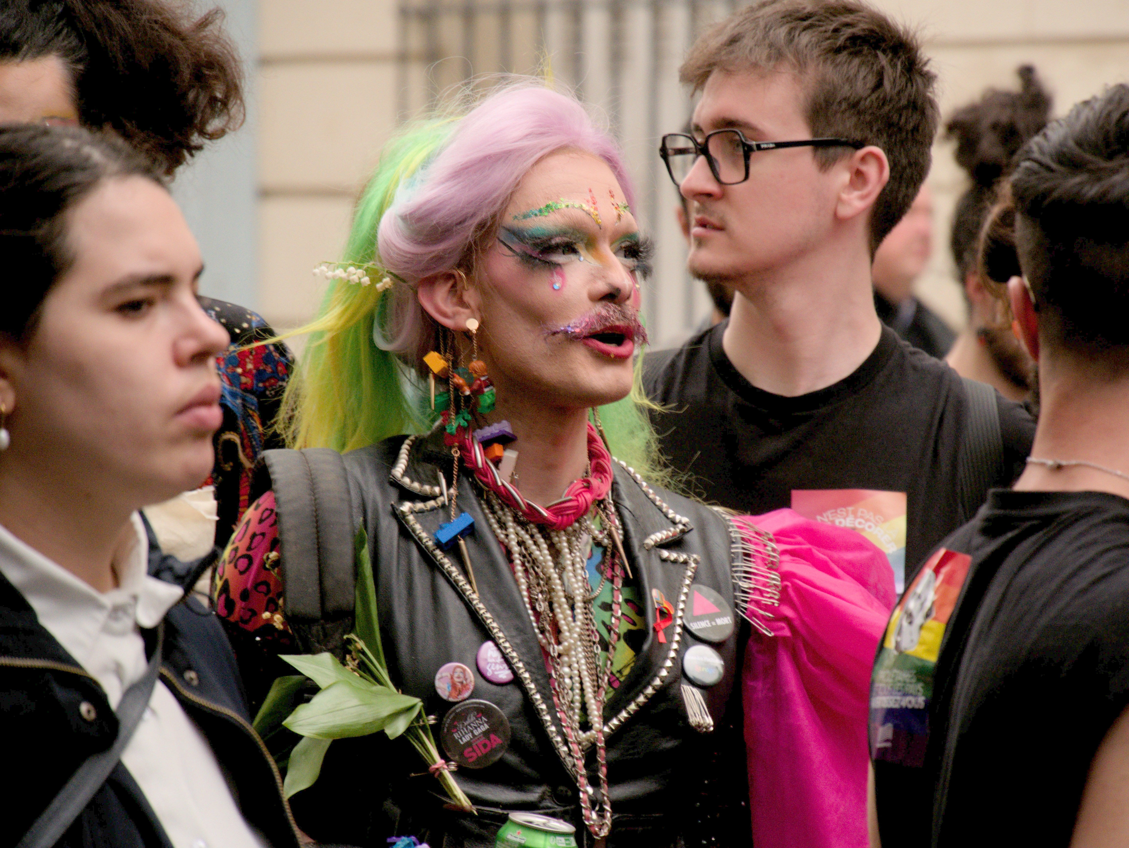 Cette année, pour le Premier Mai, fête nationale des travailleurs et travailleuses, j’ai décidé de suivre avec mon appareil photo le cortège des Inverti·es, un collectif politique qui s’efforce à mettre en lien les enjeux de luttes des classes économiques avec ceux que subissent les minorités sexuelles regroupés sous le sigle LGBTI. Le collectif était accompagné par des Drags venues défendre la valeur de leur travail et revendiquer une rémunération adéquate.