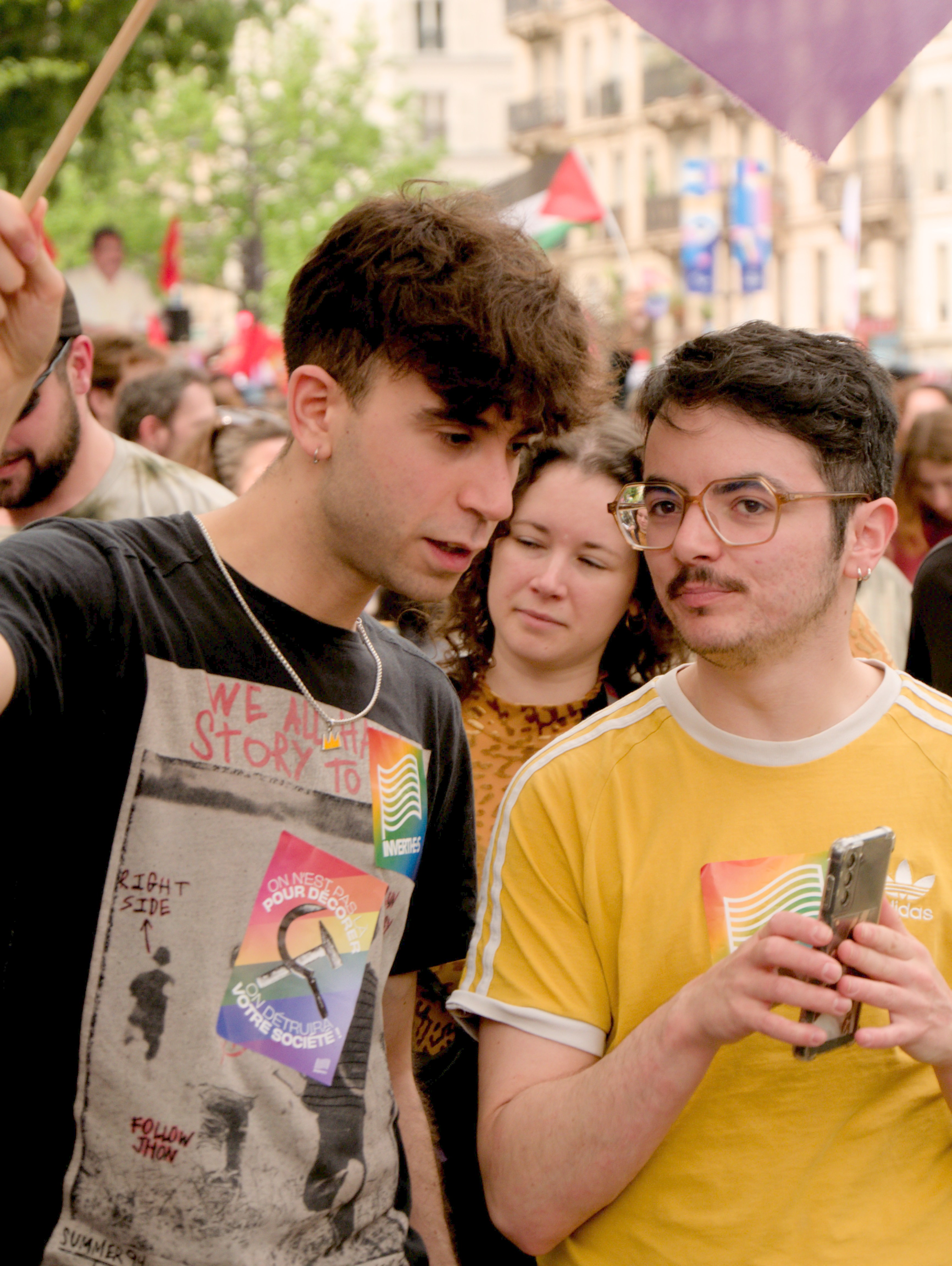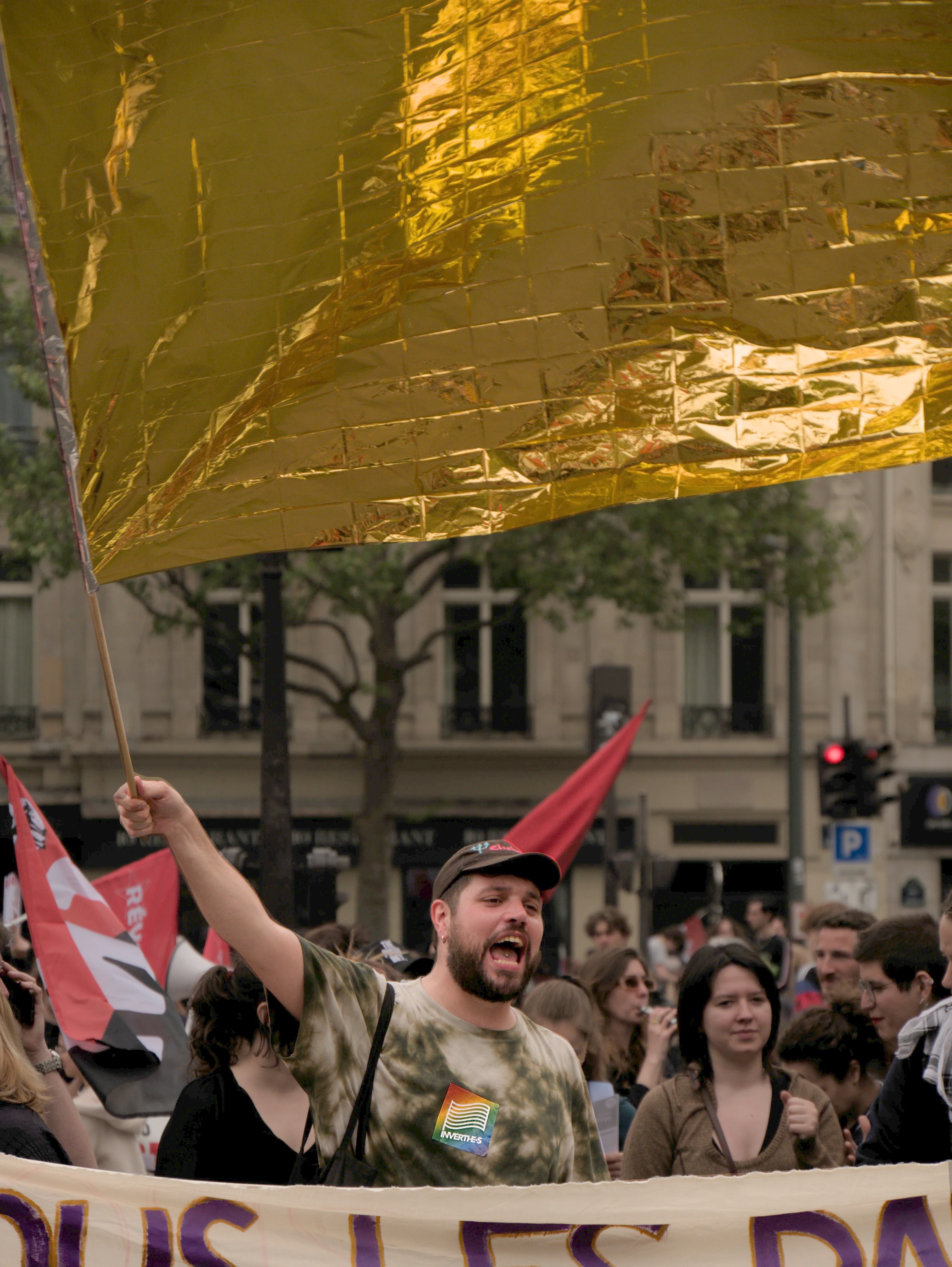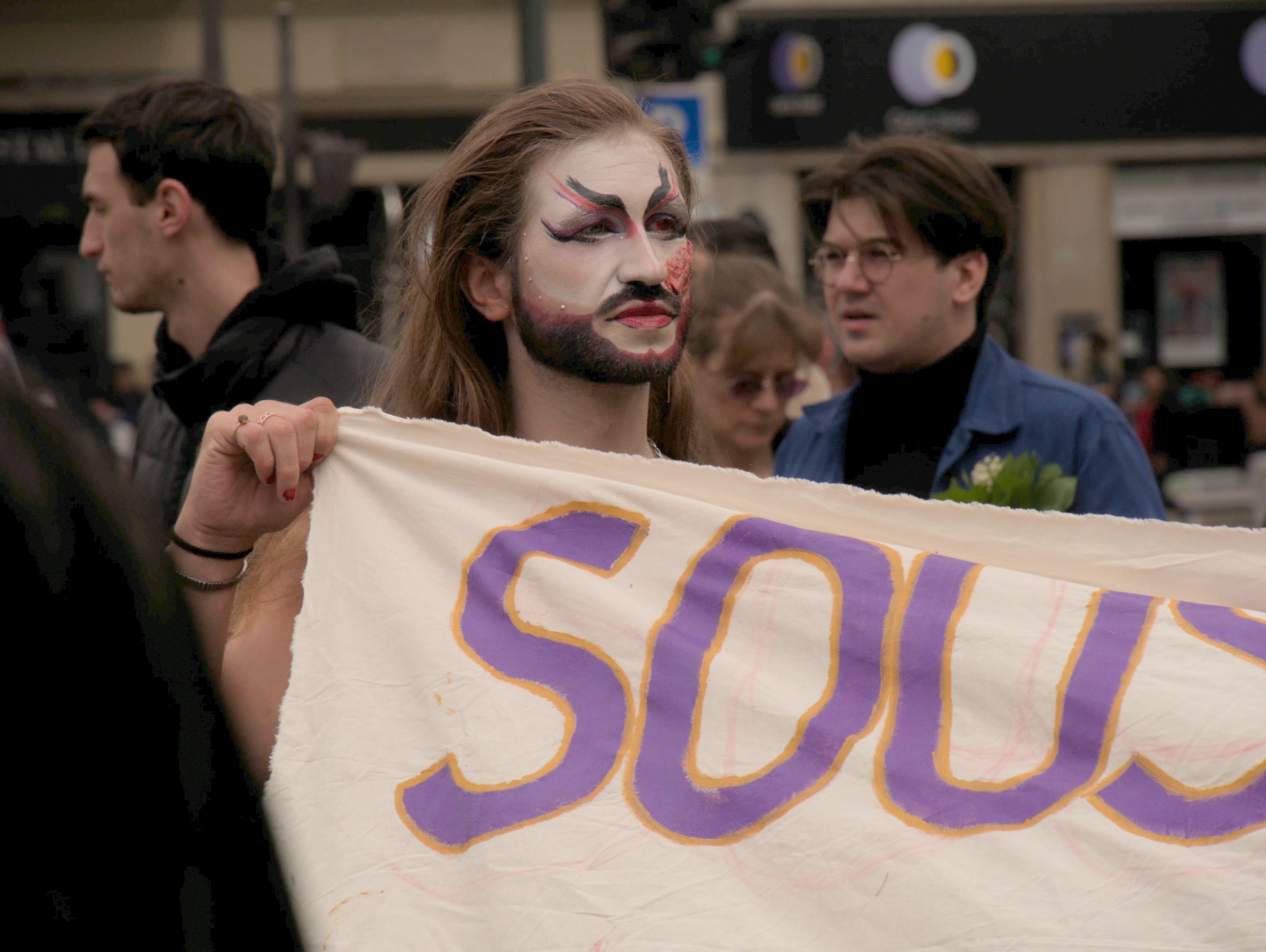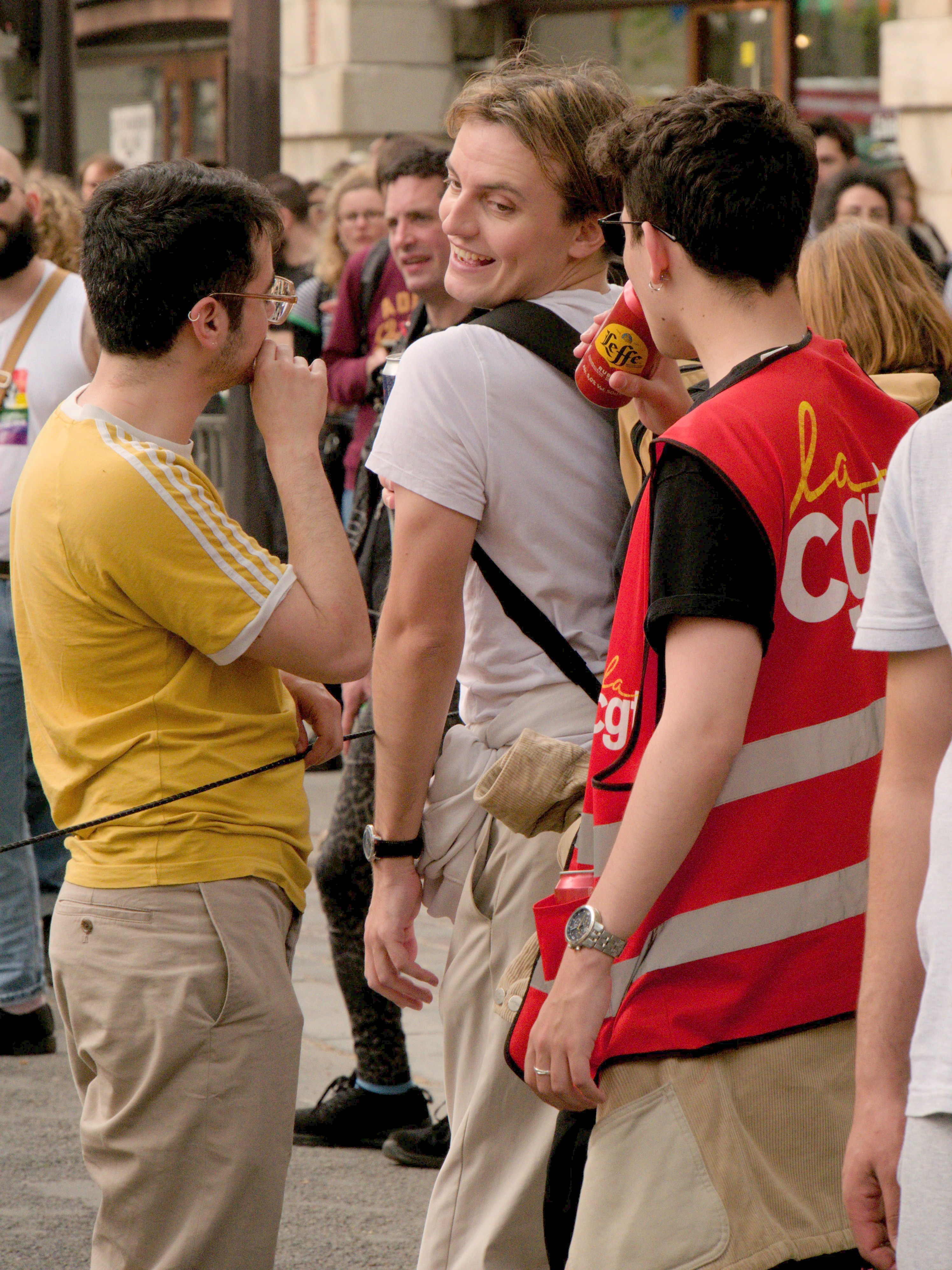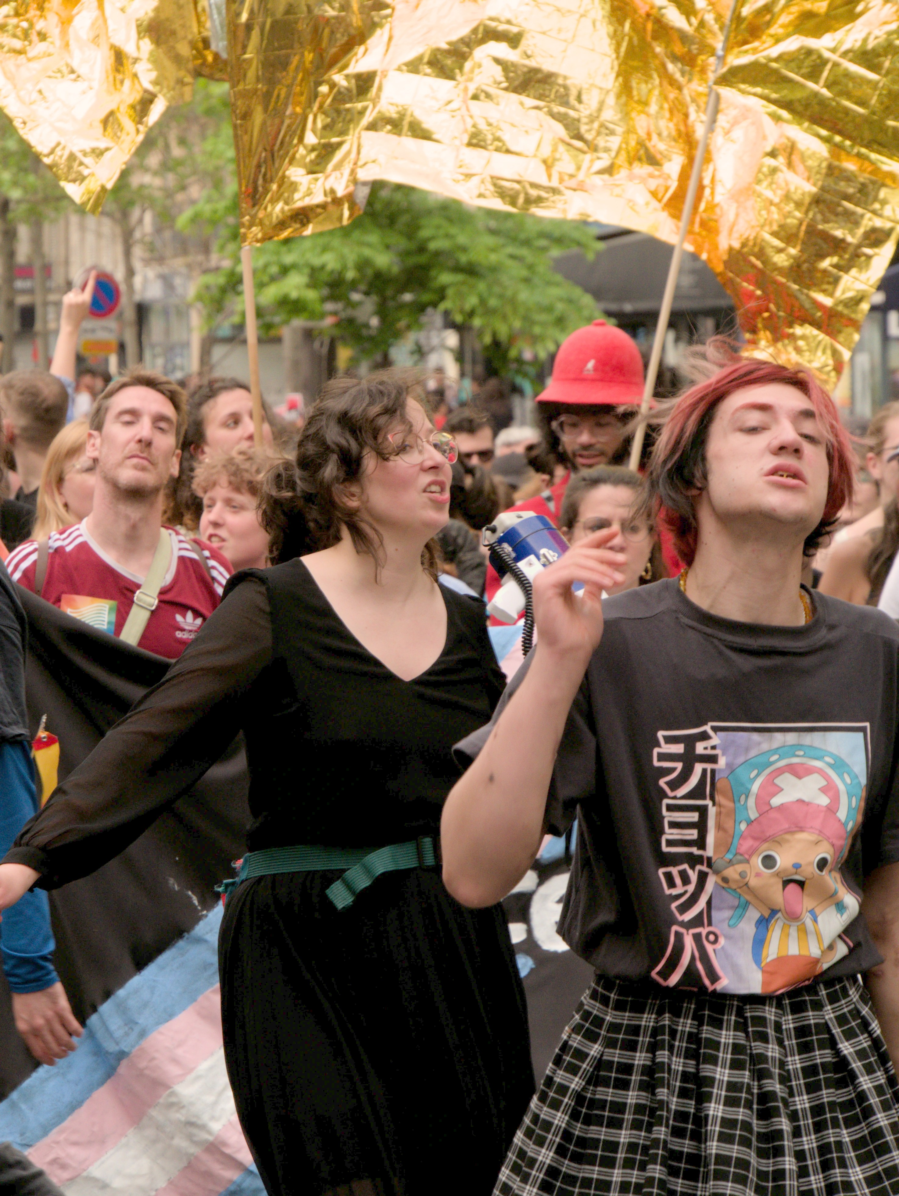 Cette année, pour le Premier Mai, fête nationale des travailleurs et travailleuses, j’ai décidé de suivre avec mon appareil photo le cortège des Inverti·es, un collectif politique qui s’efforce à mettre en lien les enjeux de luttes des classes économiques avec ceux que subissent les minorités sexuelles regroupés sous le sigle LGBTI. Le collectif était accompagné par des Drags venues défendre la valeur de leur travail et revendiquer une rémunération adéquate.
