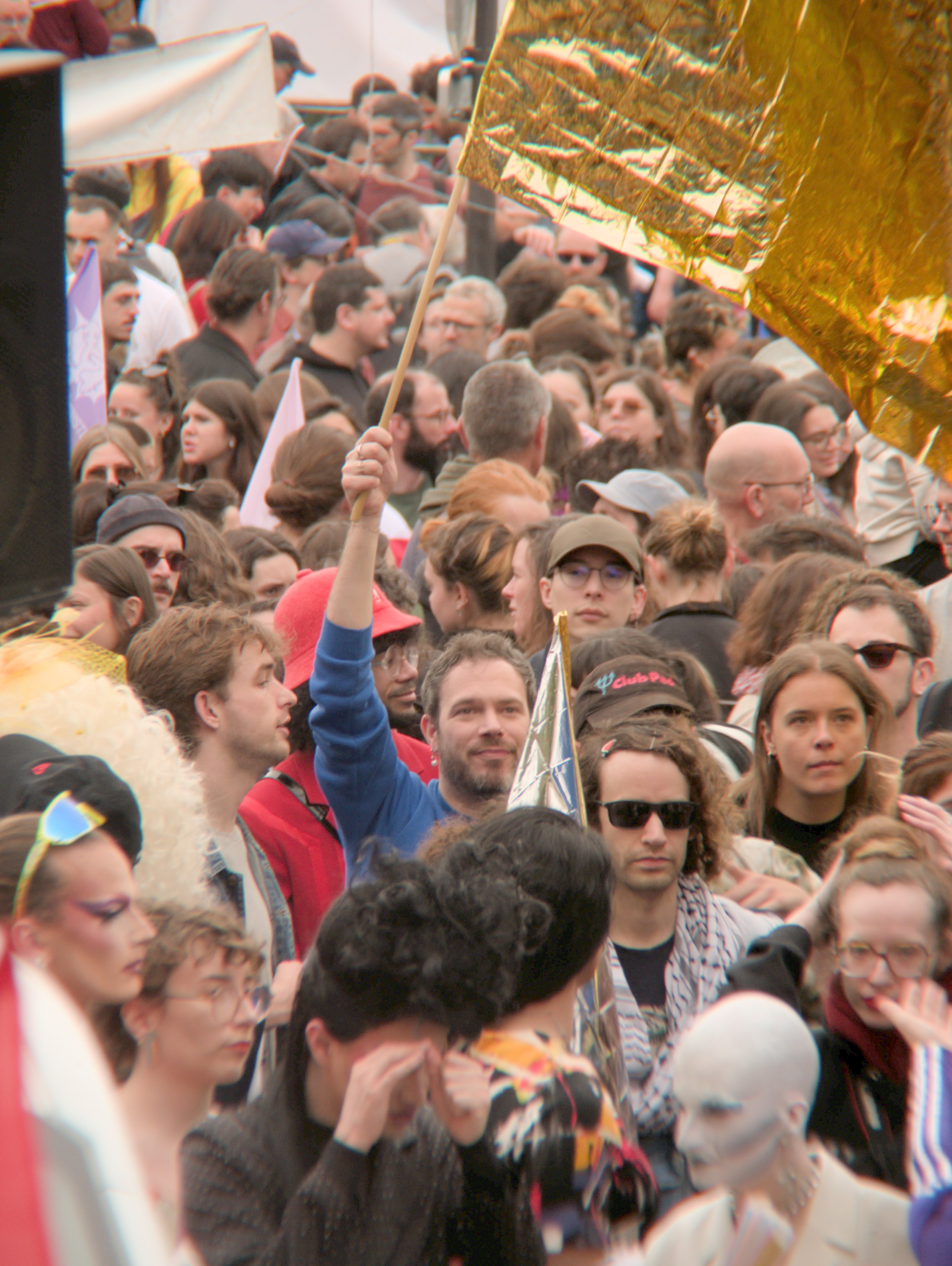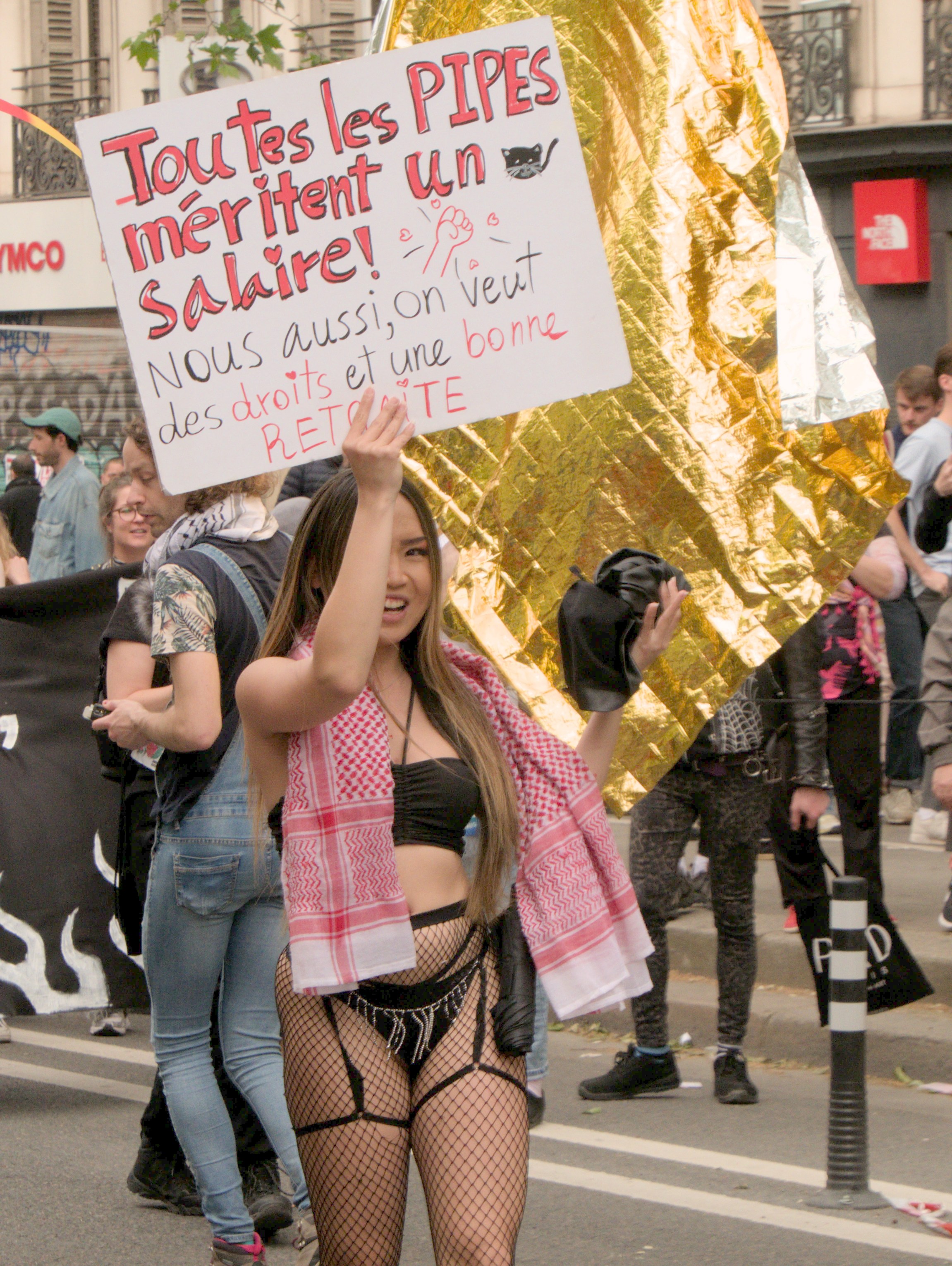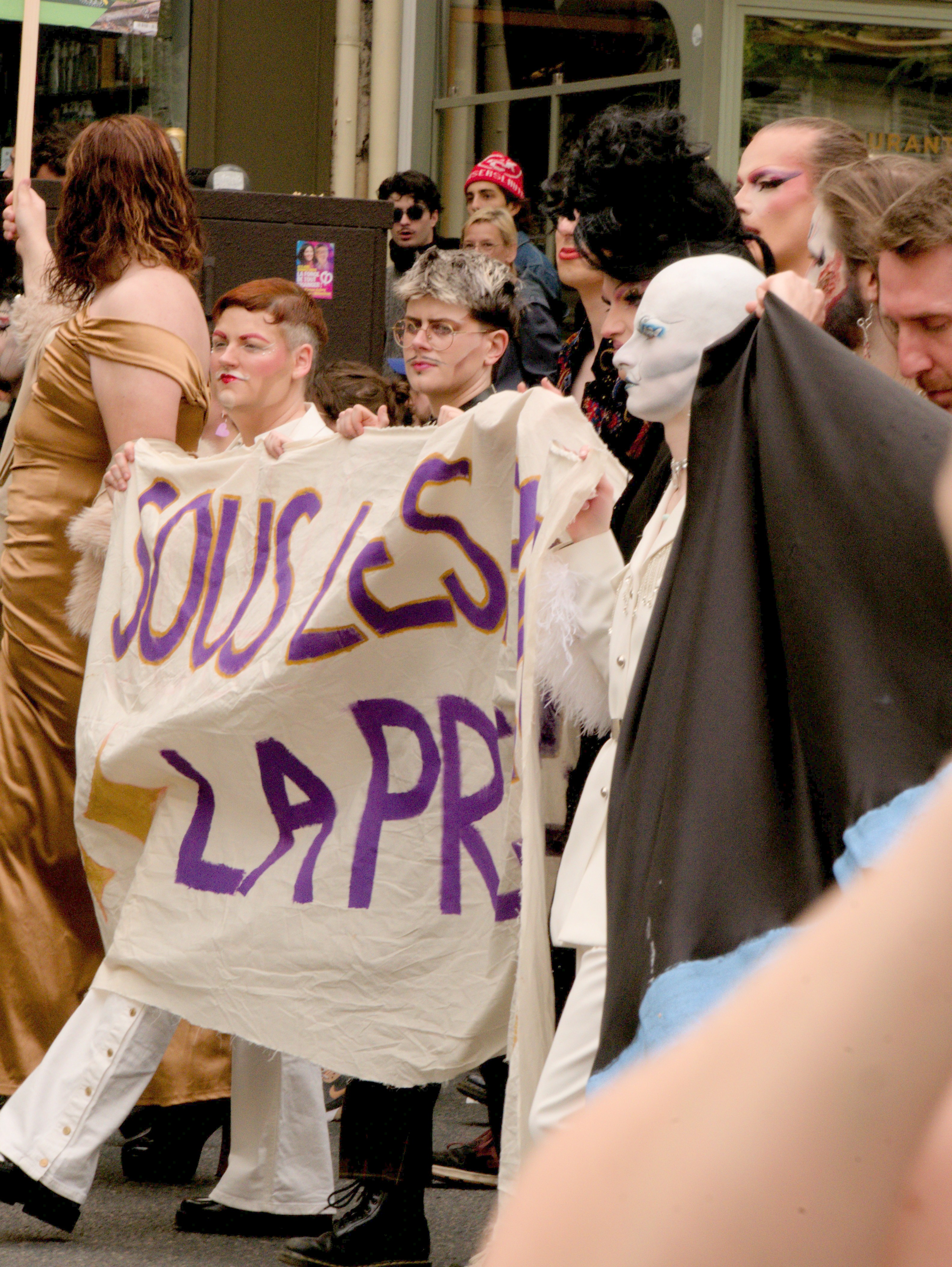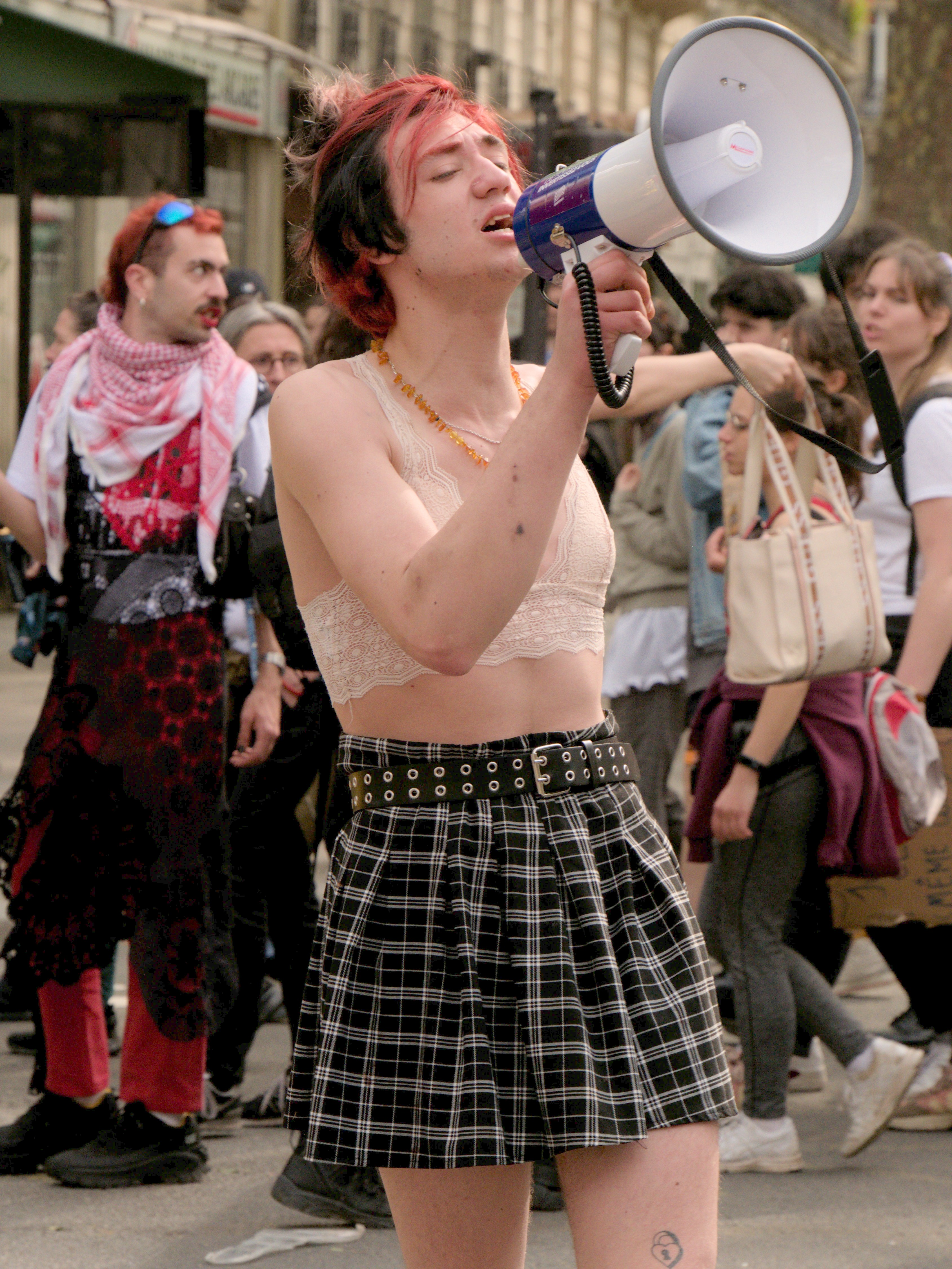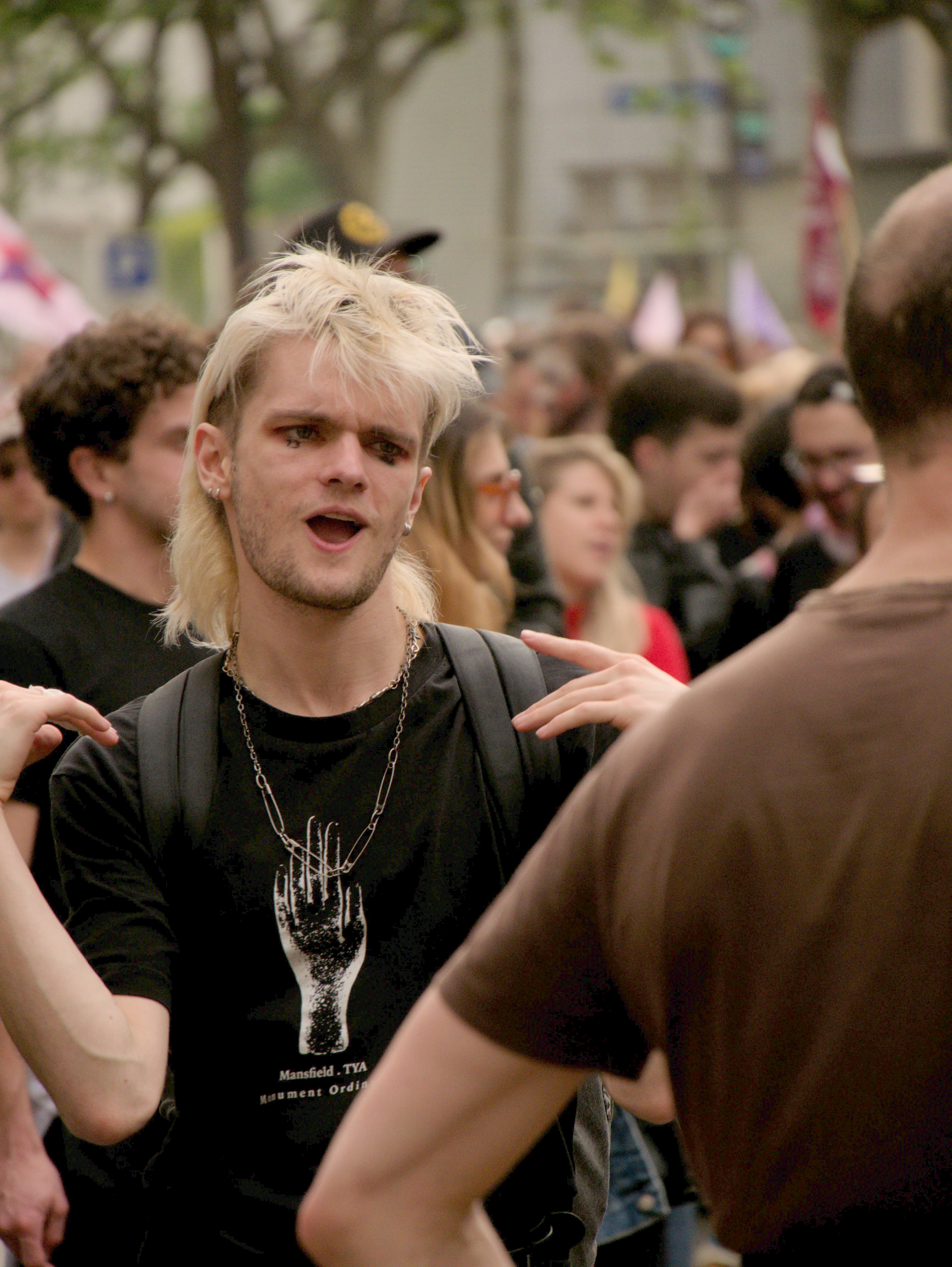 Cette année, pour le Premier Mai, fête nationale des travailleurs et travailleuses, j’ai décidé de suivre avec mon appareil photo le cortège des Inverti·es, un collectif politique qui s’efforce à mettre en lien les enjeux de luttes des classes économiques avec ceux que subissent les minorités sexuelles regroupés sous le sigle LGBTI. Le collectif était accompagné par des Drags venues défendre la valeur de leur travail et revendiquer une rémunération adéquate.