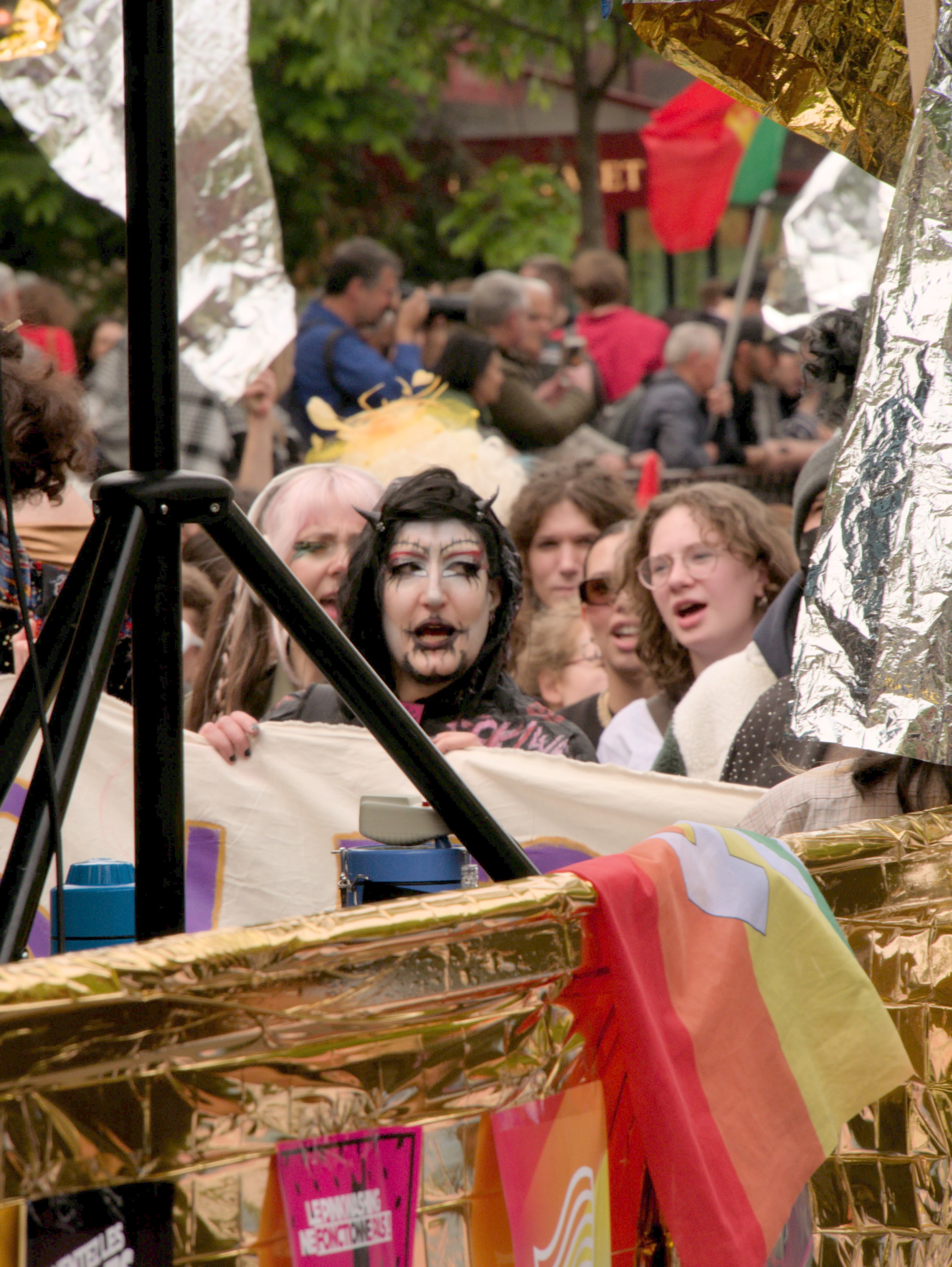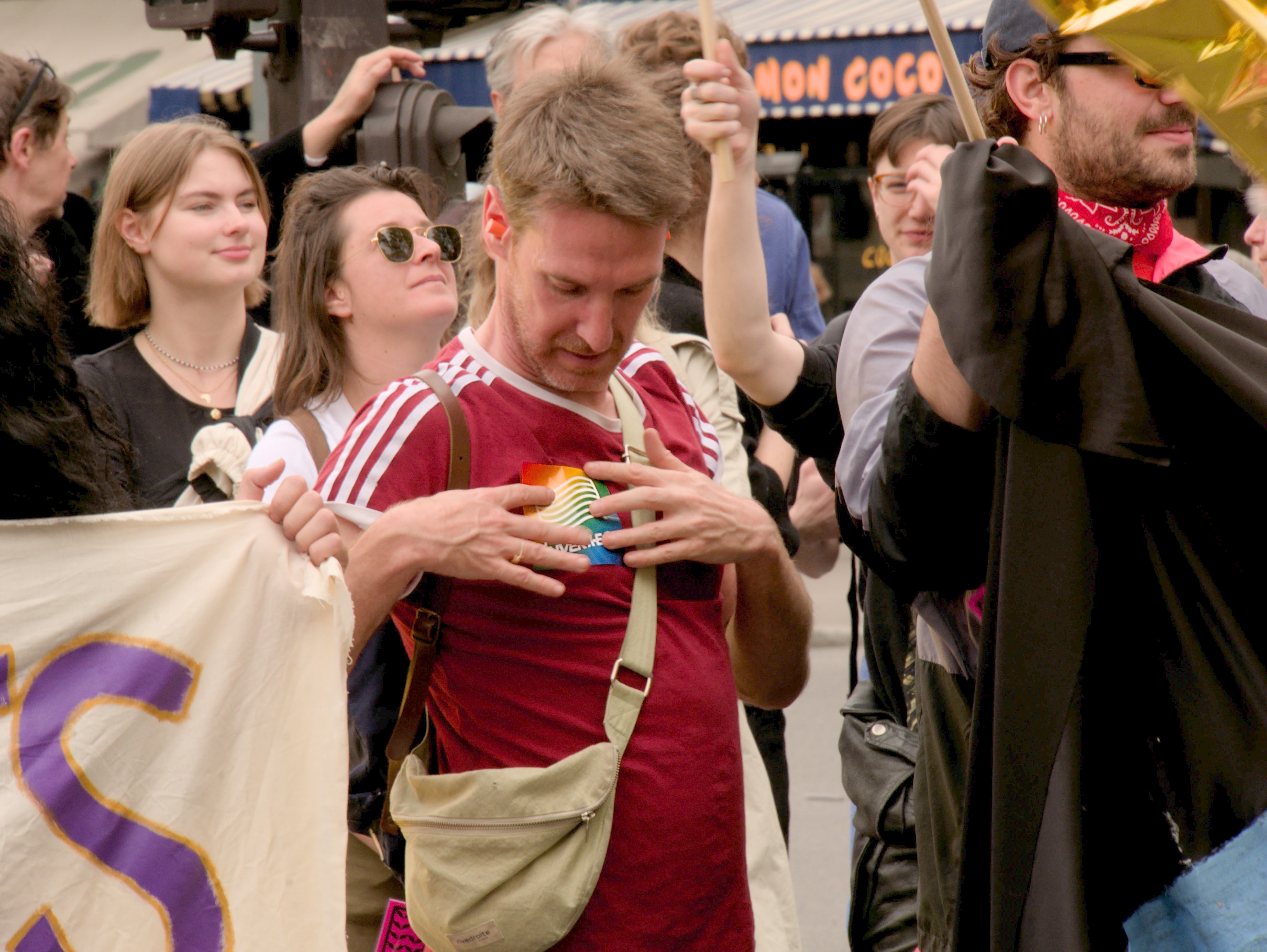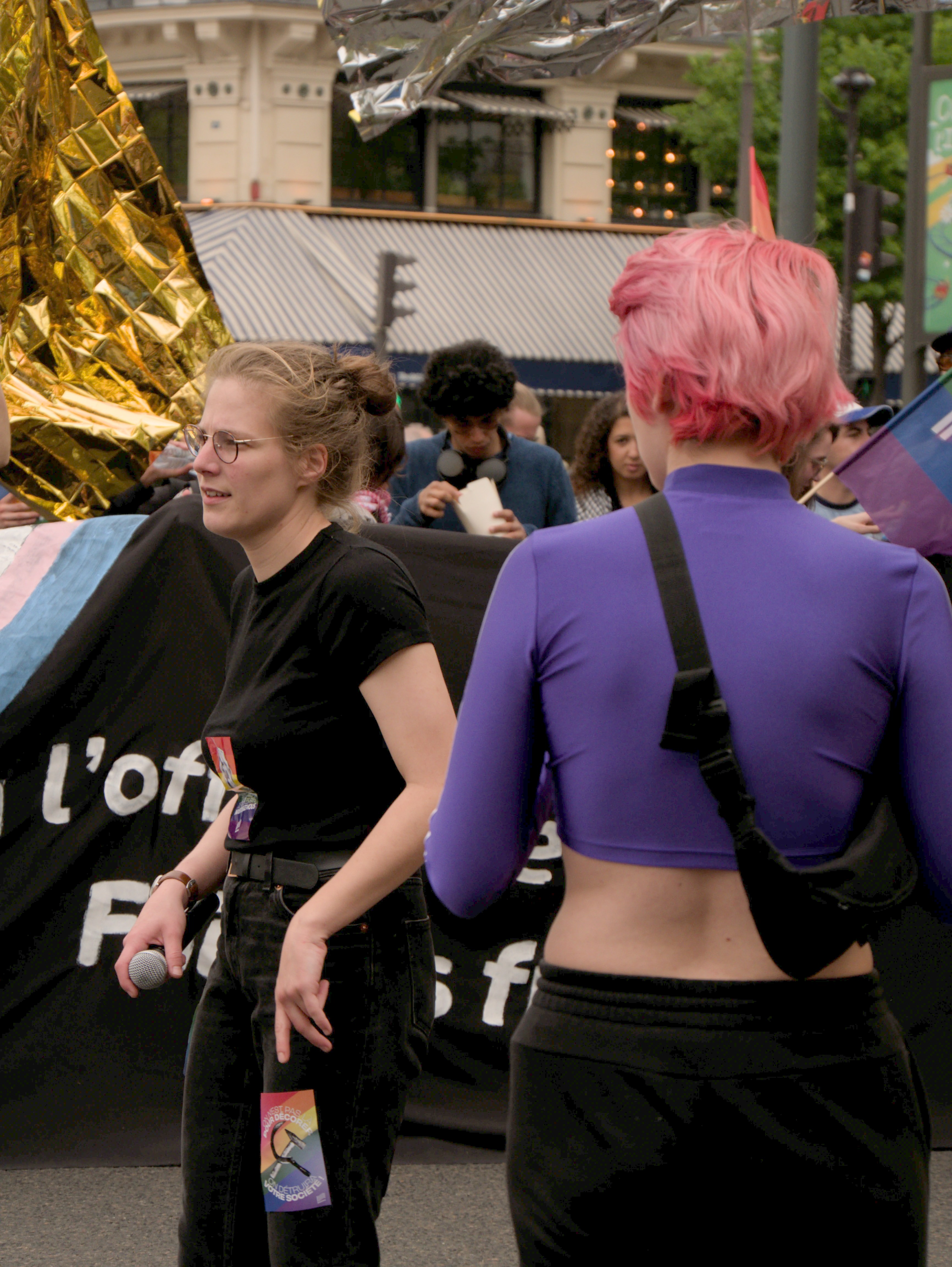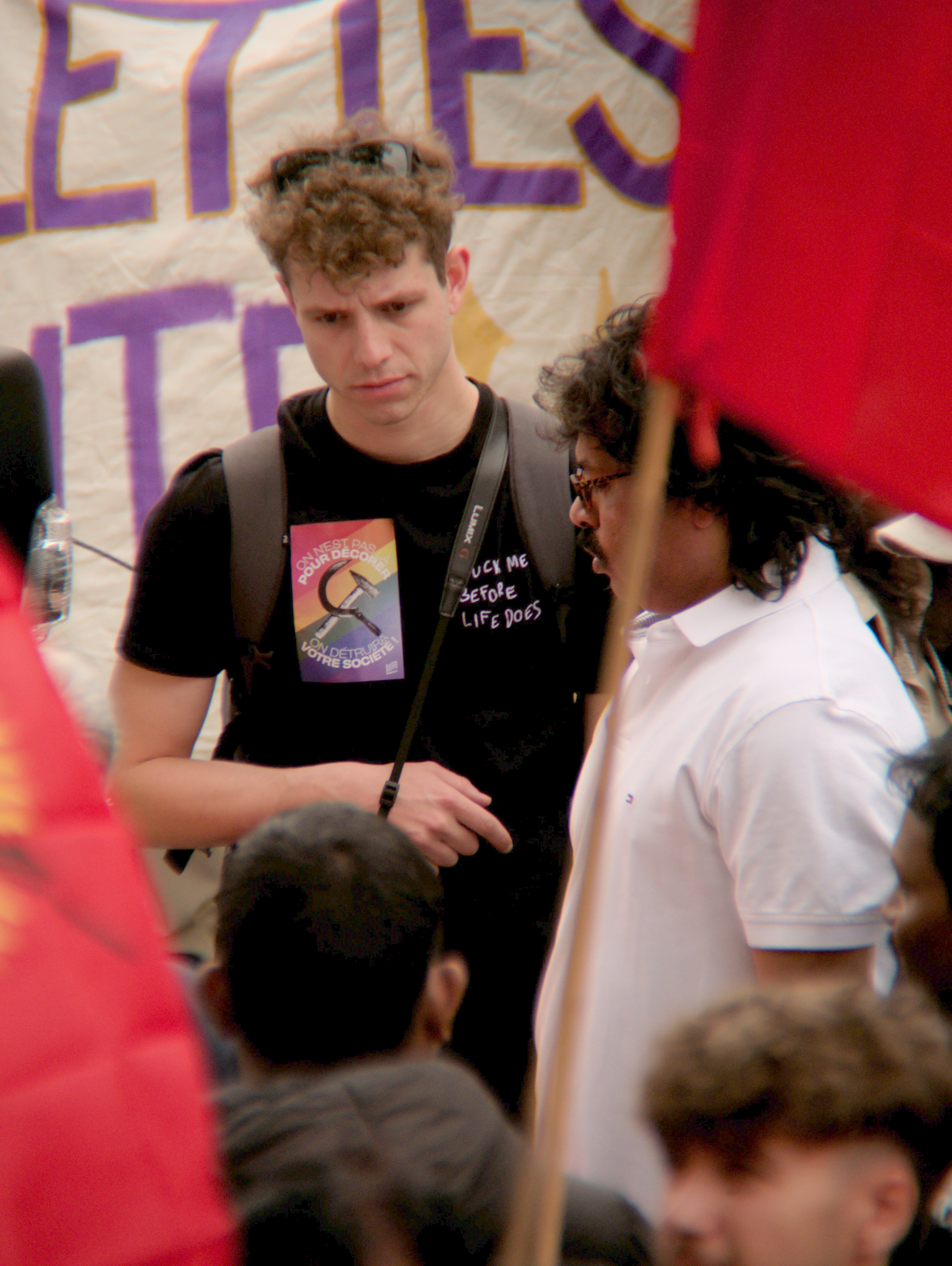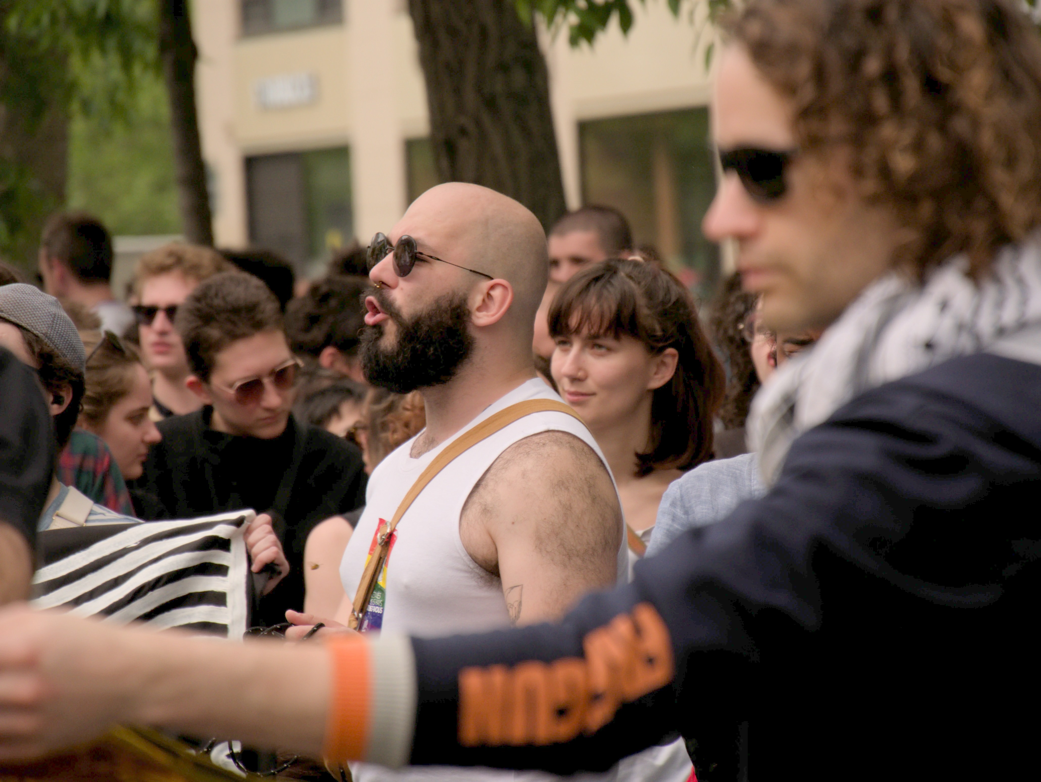 Cette année, pour le Premier Mai, fête nationale des travailleurs et travailleuses, j’ai décidé de suivre avec mon appareil photo le cortège des Inverti·es, un collectif politique qui s’efforce à mettre en lien les enjeux de luttes des classes économiques avec ceux que subissent les minorités sexuelles regroupés sous le sigle LGBTI. Le collectif était accompagné par des Drags venues défendre la valeur de leur travail et revendiquer une rémunération adéquate.