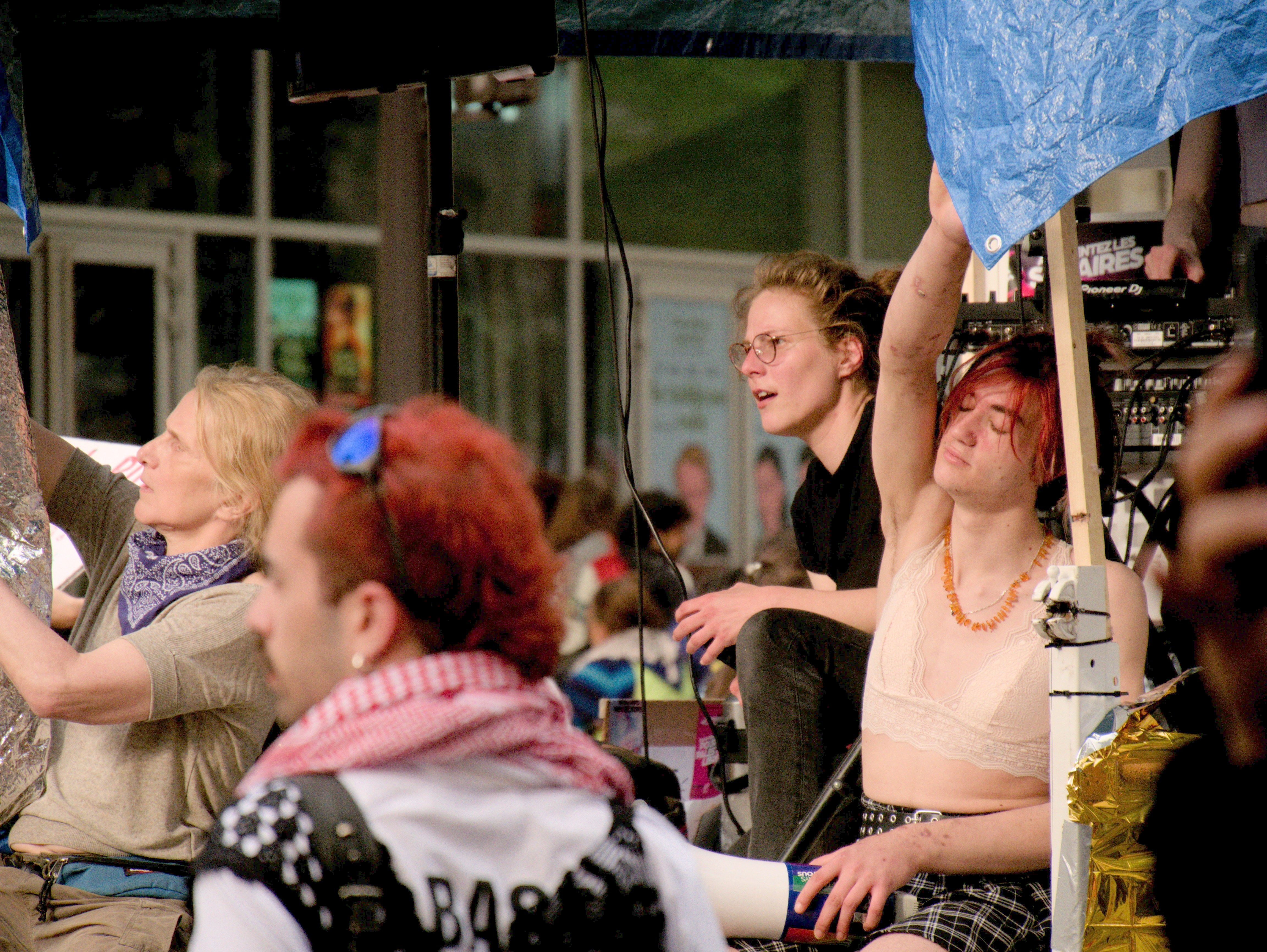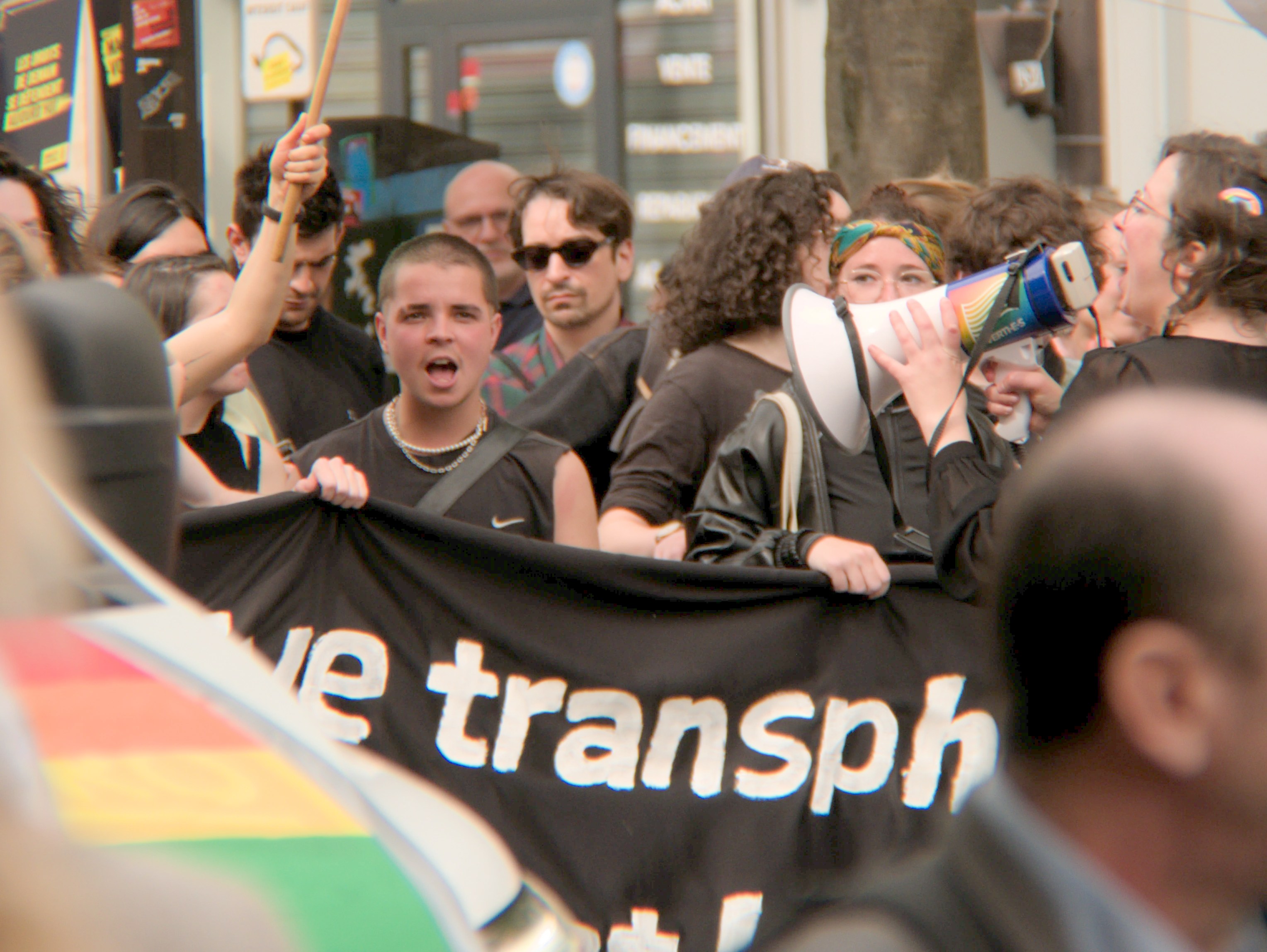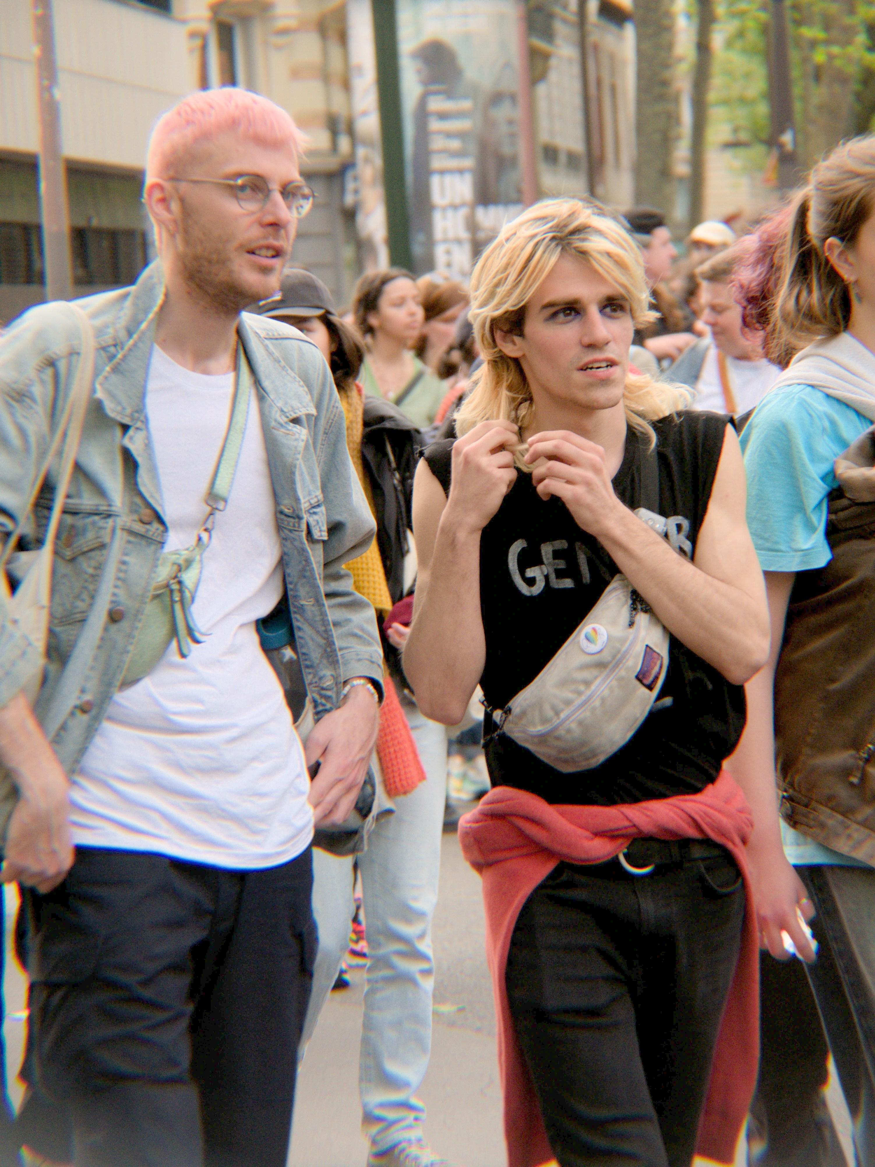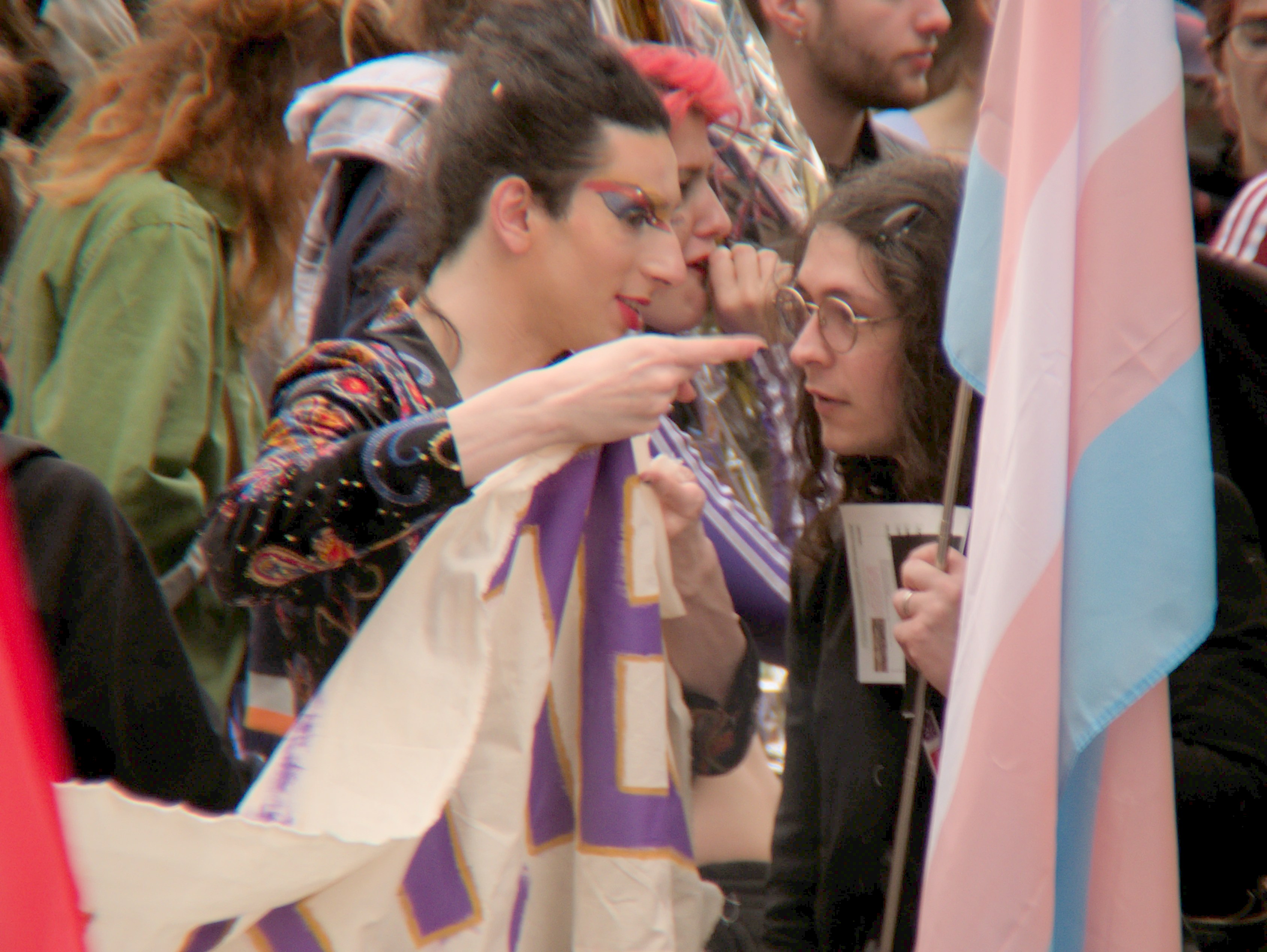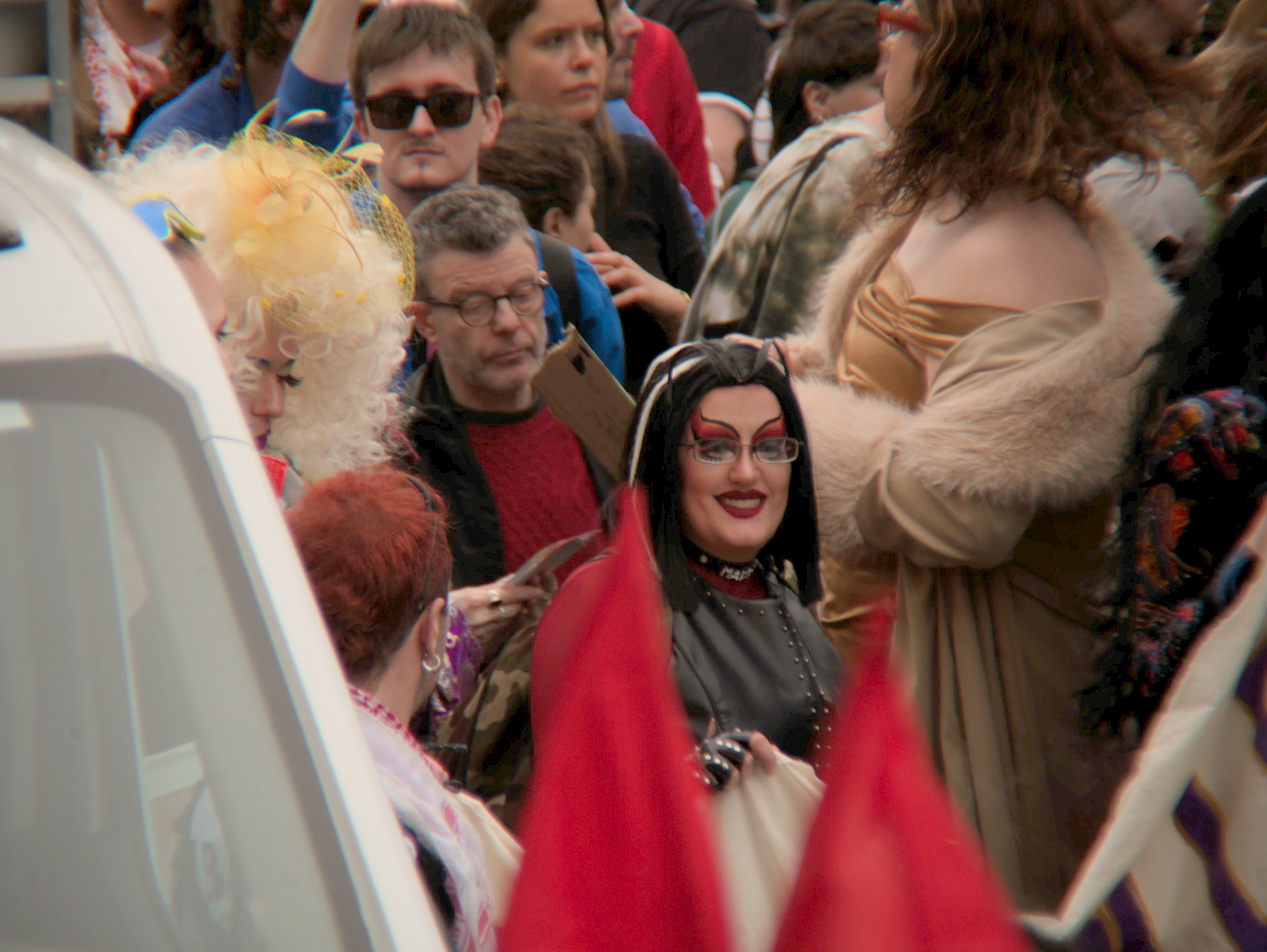 Cette année, pour le Premier Mai, fête nationale des travailleurs et travailleuses, j’ai décidé de suivre avec mon appareil photo le cortège des Inverti·es, un collectif politique qui s’efforce à mettre en lien les enjeux de luttes des classes économiques avec ceux que subissent les minorités sexuelles regroupés sous le sigle LGBTI. Le collectif était accompagné par des Drags venues défendre la valeur de leur travail et revendiquer une rémunération adéquate.