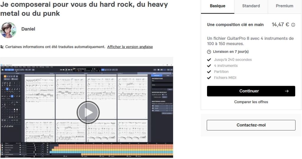 Je vous propose de composer grâce à GuitarPro 8 une musique de Hard rock / Heavy Metal / Punk pour 15$ à 100$ en fonction des options.